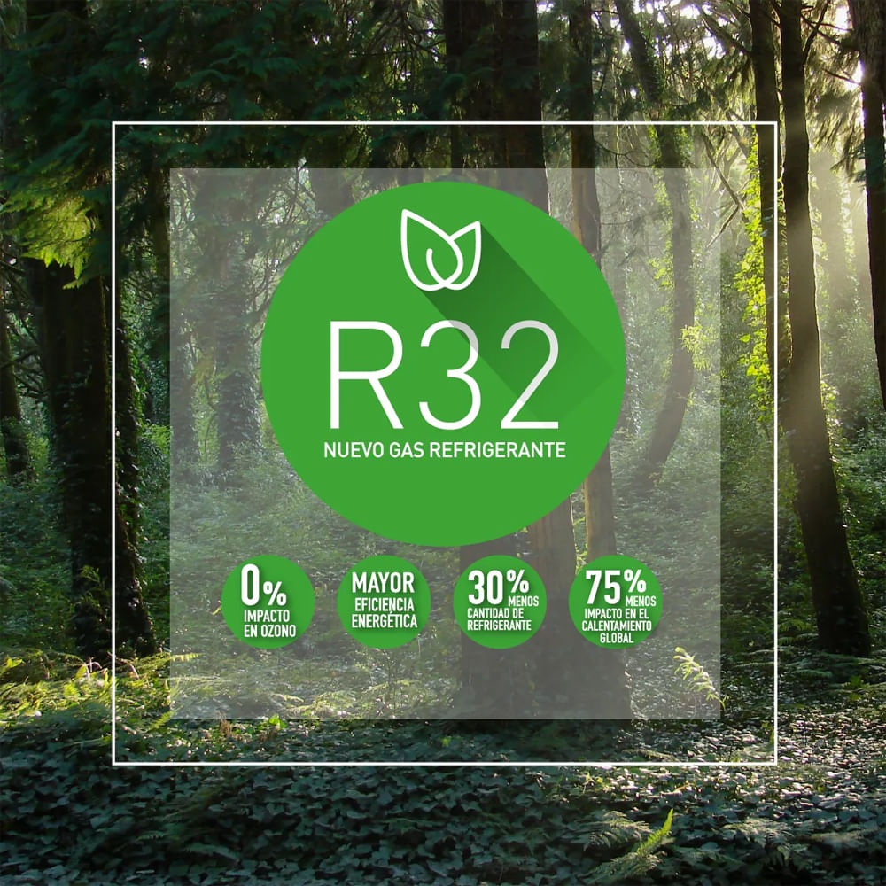 - Refrigerante ecológico R32 y protección Blue Fin: menor impacto ambiental y mejora en la durabilidad del sistema.