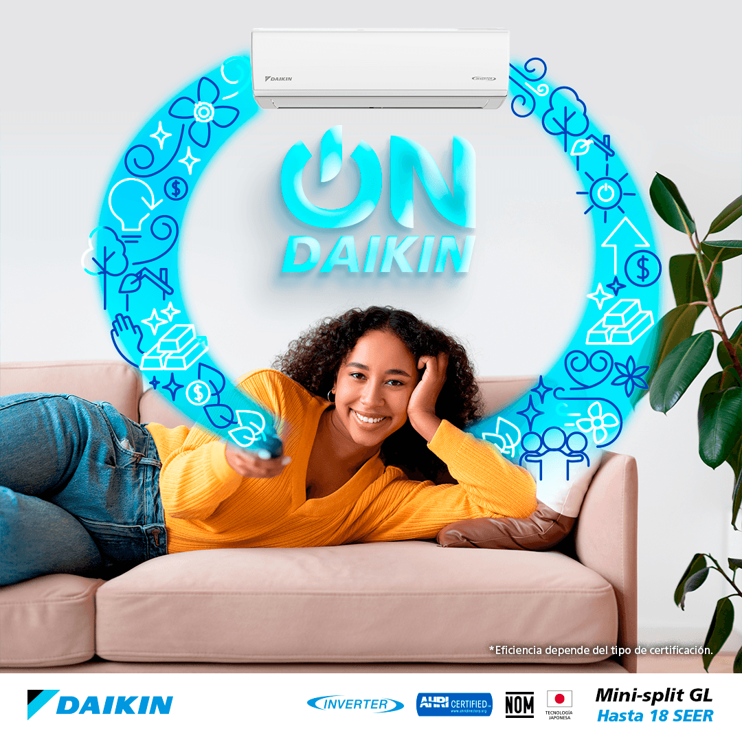 El minisplit Daikin GL es un aire acondicionado con tecnología japonesa Inverter para mayor eficiencia energética y confort, utilizando un panel plano mate para una integración estética en interiores. Ofrece alta eficiencia con hasta 18 SEER, opera silenciosamente y cuenta con características como autodiagnóstico, turbo enfriamiento, temporizador y un tratamiento anti-corrosión Goldfin para mayor durabilidad. Además, emplea refrigerante ecológico R410A para reducir el impacto ambiental.