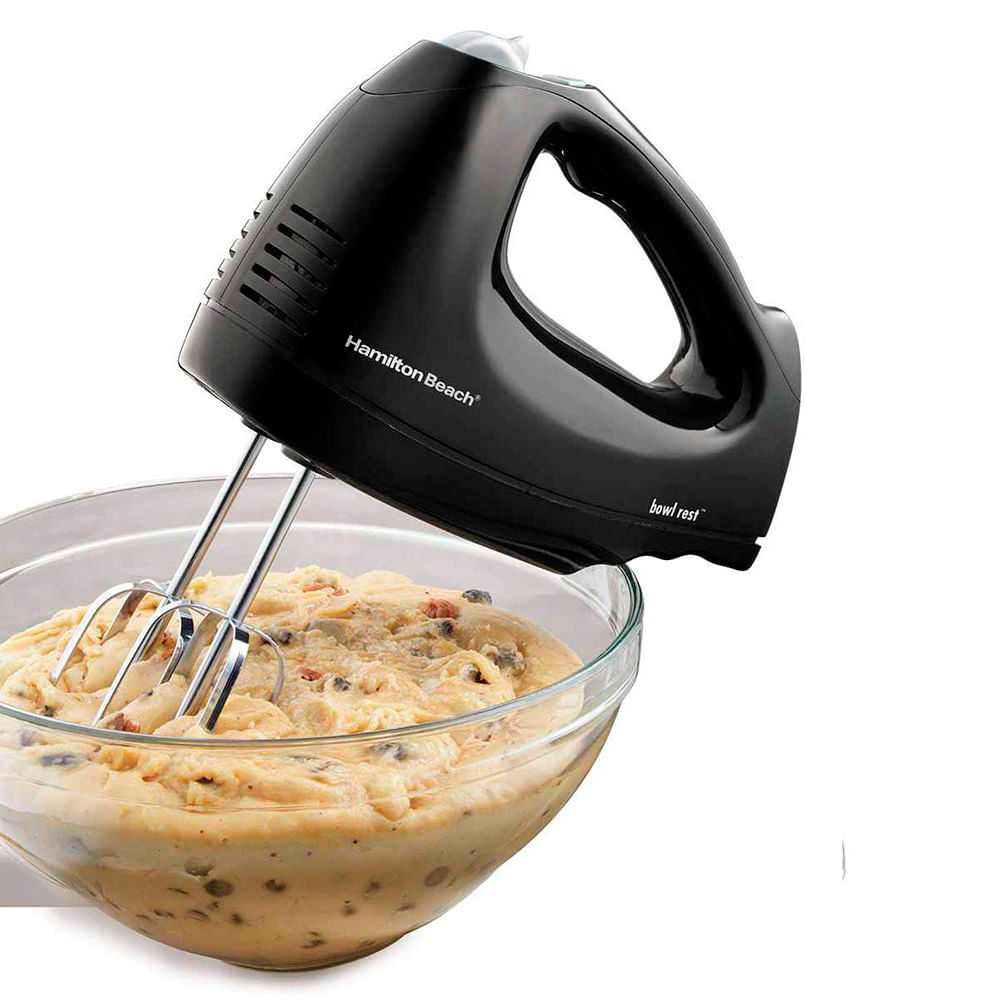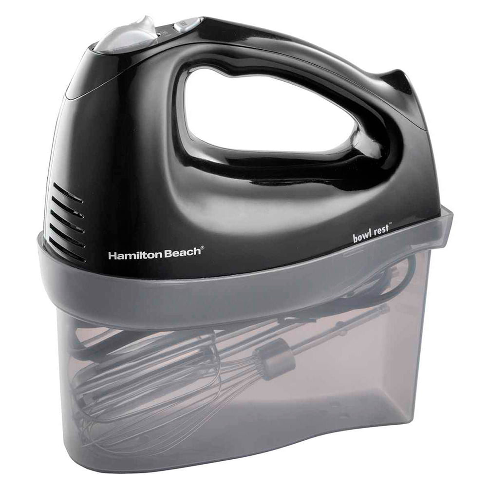 Prepare un merengue aireado o un pastel decadente con la batidora de mano de 6 velocidades Hamilton Beach con estuche Snap-On. Proporciona a los chefs comerciales y domésticos un aparato versátil que se distingue por ser un aparato confiable para mezclar, batir y doblar. Esta batidora de mano negra cuenta con un estuche transparente de almacenamiento a presión que está diseñado para contener tanto los batidores como el cable de alimentación, por lo que nunca hay una razón para buscar un batidor perdido. Tener este equipamiento compacto permite que esta unidad se almacene fácilmente sin ocupar demasiado espacio en el gabinete. El diseño de la batidora de mano de Hamilton Beach incluye un reposacabezas integrado que facilita la colocación de la batidora al agregar ingredientes. También exhibe un dial de control grande para acceder rápidamente a seis velocidades de mezcla. La batidora manual Hamilton Beach de 6 velocidades con estuche a presión incluye una función de ráfaga que se puede usar a cualquier velocidad para dar un impulso adicional de potencia.