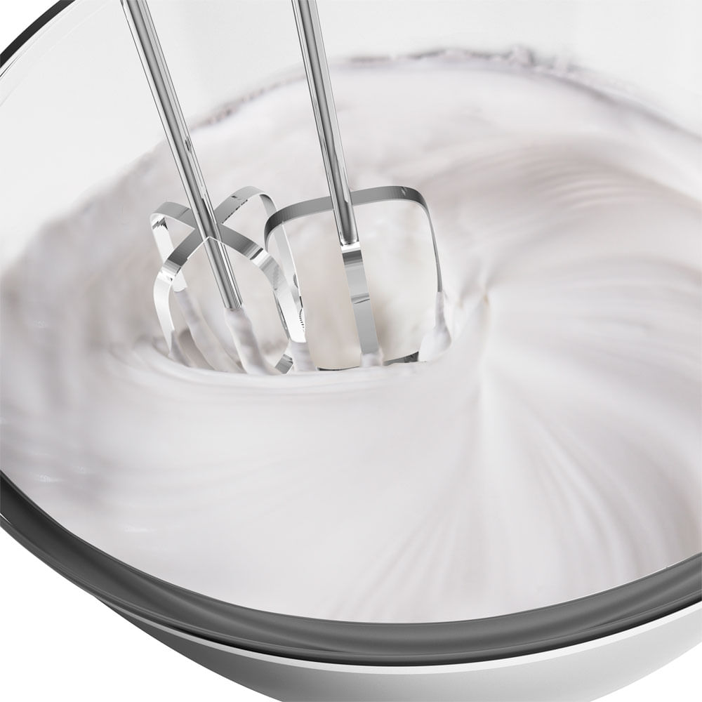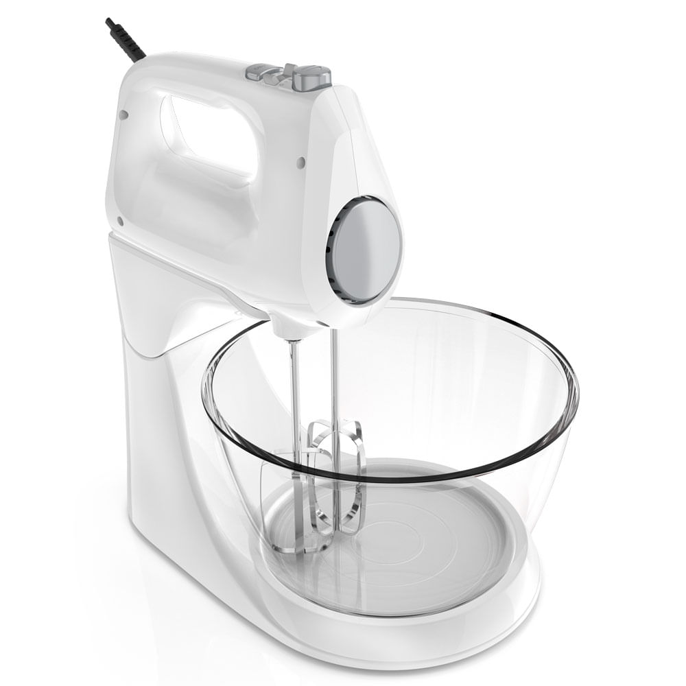 Accesorios incluidos: 2 Batidores de alambre 2 Ganchos para masa, Tazón de Plástico y Tazón de Vidrio.