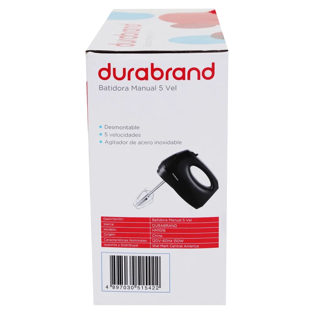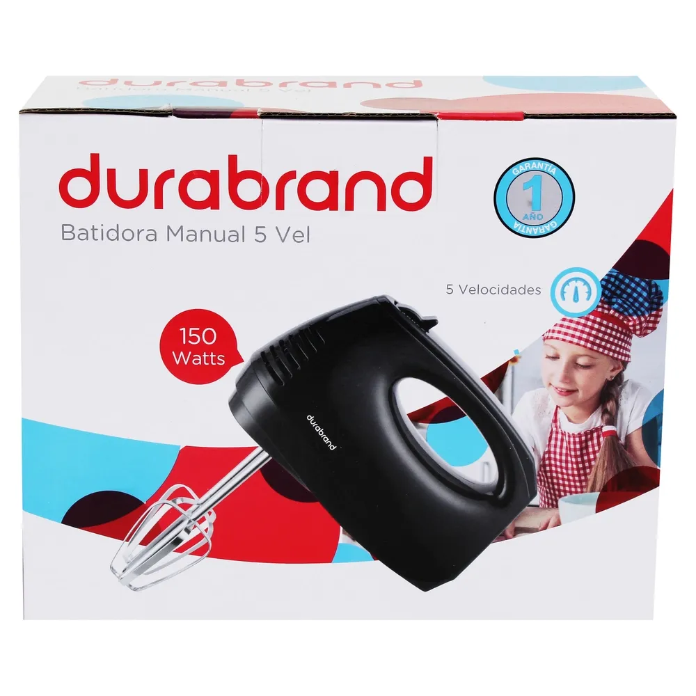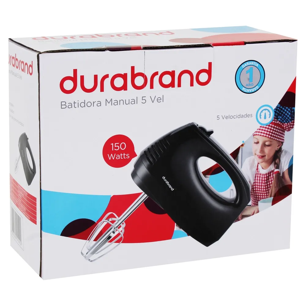 La batidora manual Durabrand de 5 velocidades y 150W es ideal para batir y mezclar ingredientes ligeros. Sus velocidades permiten ajustar la intensidad según la preparación, logrando resultados más uniformes. Es una herramienta práctica para el uso diario. Compra en línea y simplifica tus recetas.