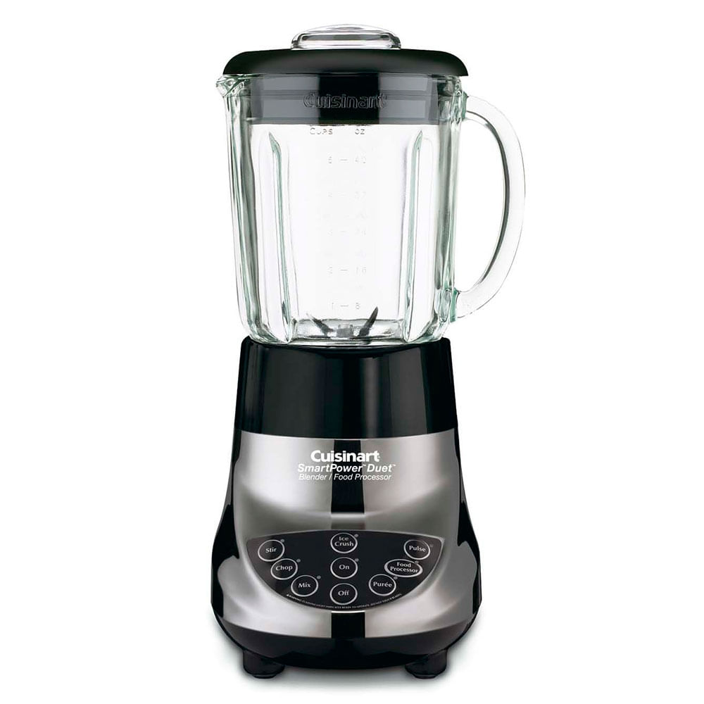 Batidora y procesadora de alimentos, este 2 en 1 tiene un potente motor quetritura hielo al instante sin agregar líquido.Esta muy inteligente y versátil SmartPower â„¢ 500 Watt Blender / Food Processor tiene suficiente potencia y velocidad para hacerlo todo. Motor de 500 vatios de máxima potencia con protección contra sobrecarga.Caracteristicas:- Carcasa de metal fundido a presión.- Jarra mezcladora de vidrio de 48 onzas con un conjunto de cuchillas de acero inoxidable ultra afilado de primera calidad- Accesorio para procesador de alimentos de 3 tazas con tubo de alimentación y empujador, disco de corte / trituración y cuchilla de corte de acero inoxidable- Controles electrónicos táctiles de 7 velocidades con indicadores LED- Tapa de medición extraíble de 2 onzas en la tapa de la jarra de la licuadora- Libro de recetas- Sin BPA sobrecarga.