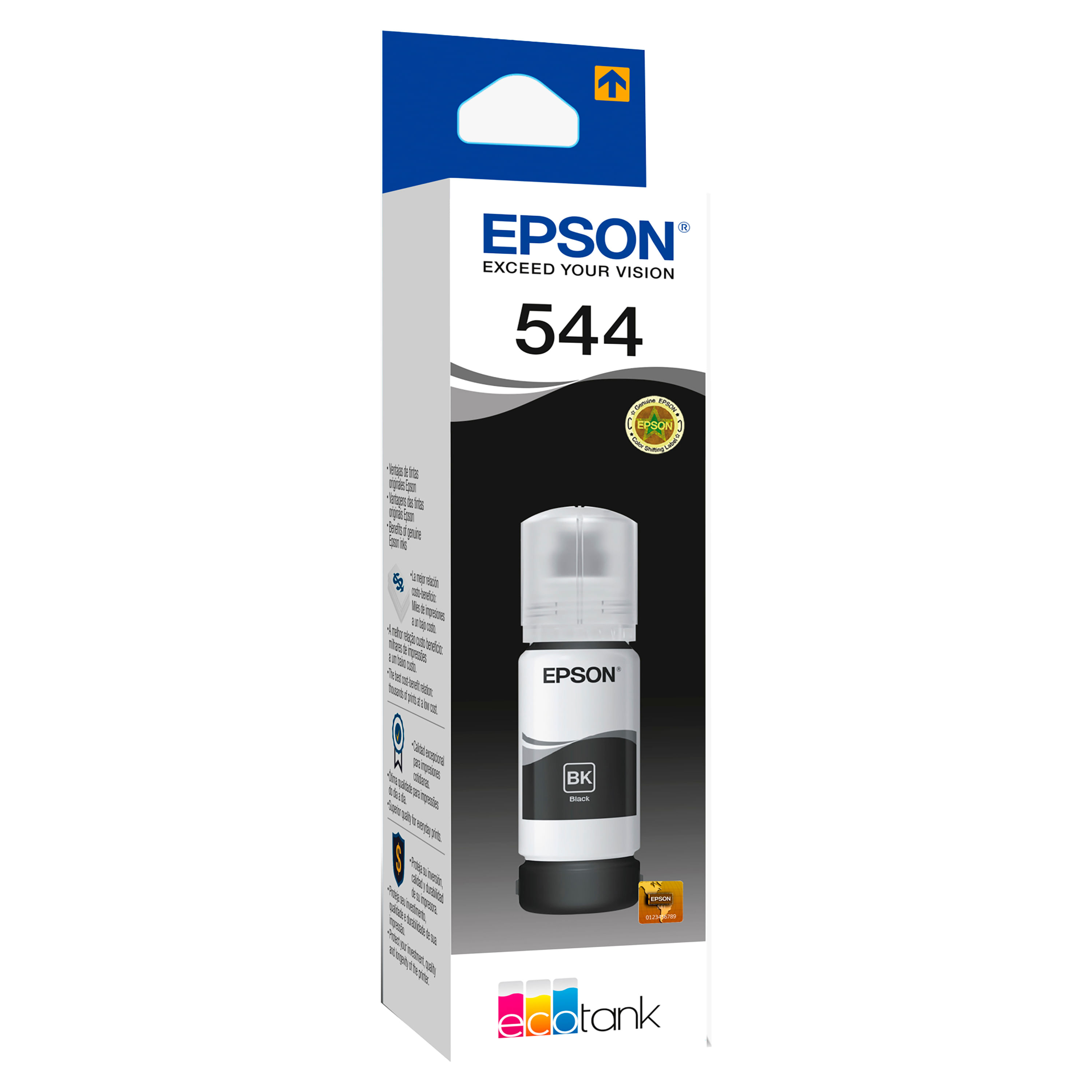La botella de tinta Epson color negro T544120 es una opción de alta calidad diseñada para proporcionar impresiones nítidas y profesionales en una amplia gama de documentos y gráficos. Especialmente formulada para impresoras Epson, esta botella de tinta garantiza una excelente calidad de impresión y un rendimiento confiable para satisfacer las necesidades de impresión en oficinas, hogares y entornos comerciales. Composición y Calidad de Tinta: La tinta de la botella Epson T544120 está formulada con una tecnología de tinta pigmentada de alta calidad que asegura una reproducción precisa de los colores y una excelente durabilidad. La tinta negra proporciona textos nítidos y gráficos definidos, asegurando que los documentos impresos tengan un aspecto profesional y claro. La tecnología de pigmento también contribuye a una mayor resistencia a la decoloración y al agua, lo que hace que los documentos impresos sean más duraderos y resistentes al paso del tiempo.