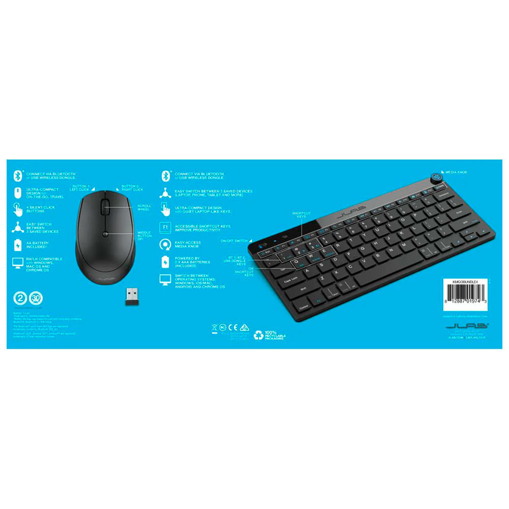 DISEÑO ELEGANTE Diseñado para ser ultracompacto, discreto y liviano, este conjunto de teclado y mouse Bluetooth para múltiples dispositivos se puede llevar a cualquier lugar. Se siente tan cómodo con su computadora portátil en su configuración de trabajo desde casa como cuando viaja a la oficina, cafeterías o espacios de coworking.