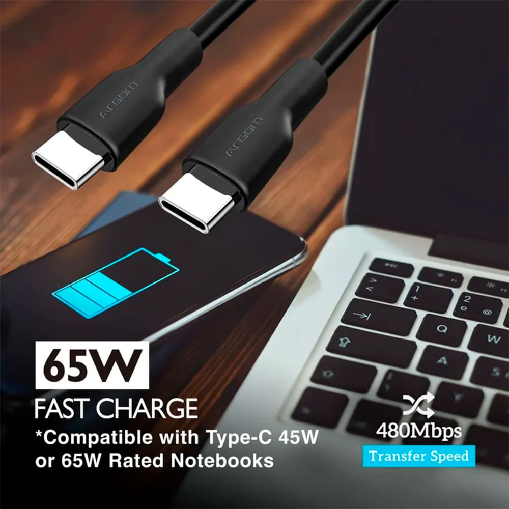 Cable de conexión Typc a Lightning de la marca Argom, diseñado para proporcionar carga rápida de hasta 30W. Ideal para dispositivos compatibles con esta tecnología, ofrece durabilidad y eficiencia en la carga.