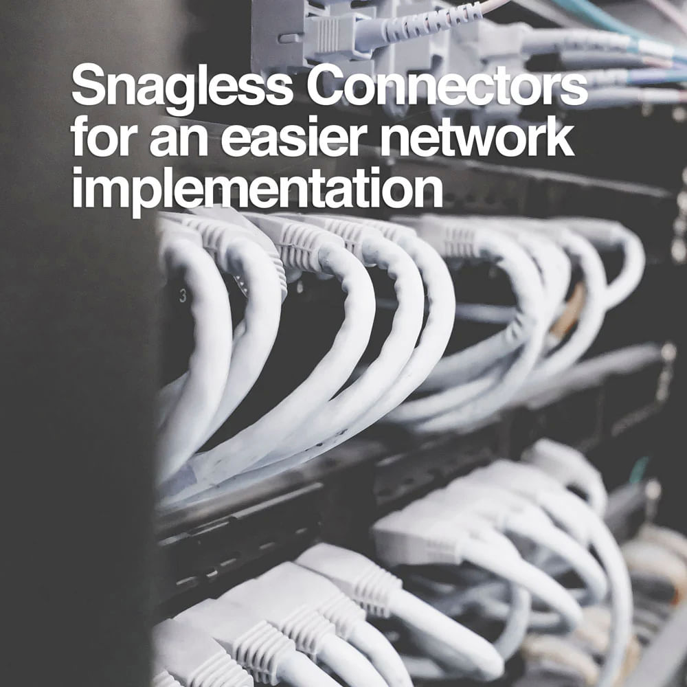 Diseño Inteligente para Instalación Sencilla:- Conectores RJ-45 sin enganche que facilitan la instalación en espacios reducidos