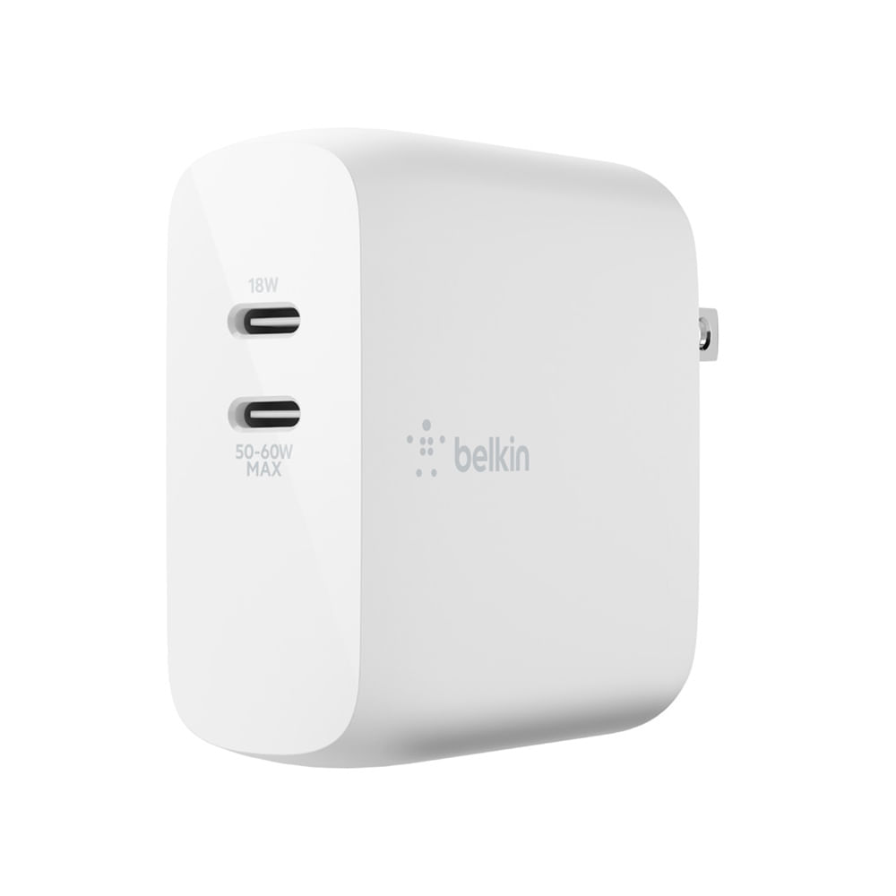 Disfruta de una recarga potente e inteligente con el cargador de pared BOOST CHARGE Dual USB Type-C PD GaN de 68W de Belkin. Gracias a la avanzada tecnología GaN (nitruro de galio), este cargador compacto ofrece una potencia máxima de hasta 68W para cargar rápidamente tus smartphones, dispositivos de juego y laptops sin ocupar mucho espacio. Cuenta con dos puertos USB-C que ajustan automáticamente la potencia según los dispositivos conectados, asegurando eficiencia y seguridad en cada carga.