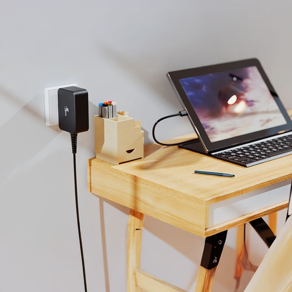 Potencia de hasta 65W Ideal para cargar laptops, tablets y teléfonos inteligentes con gran velocidad y eficiencia.
