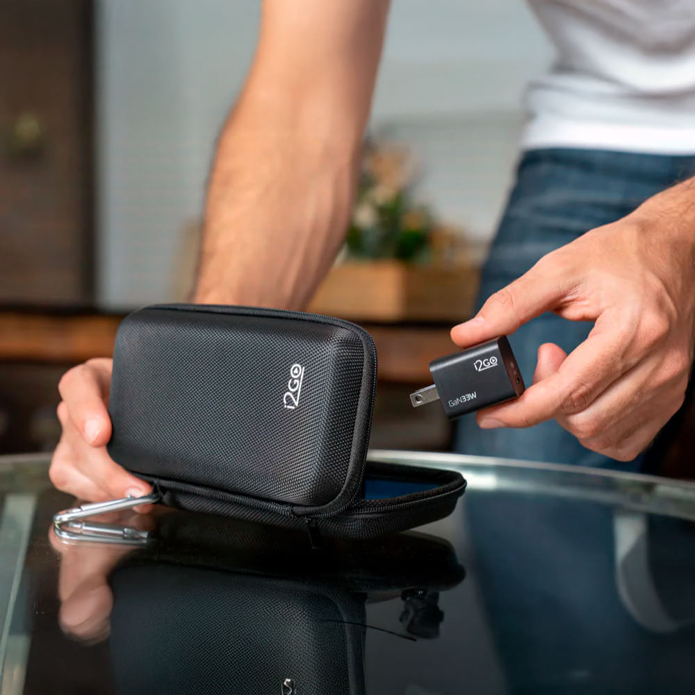- Hasta 2 veces más pequeño que los cargadores convencionales. Cabe fácilmente en el bolsillo, estuche o mochila.