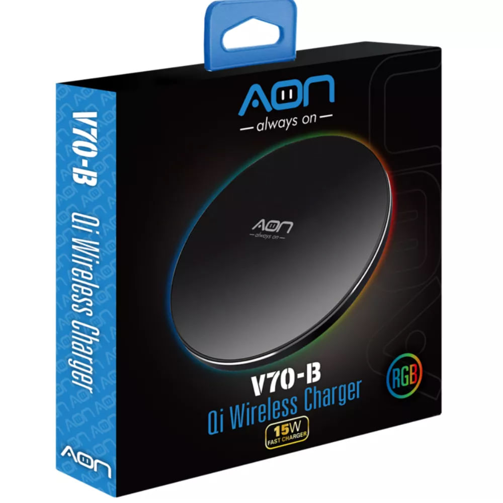 El AON AO-WC-2008 V70-B es un cargador inalámbrico de 15W diseñado para ofrecer una carga rápida y eficiente gracias a su tecnología Qi. Equipado con luces LED suaves, es ideal para usar como luz nocturna mientras cargas tus dispositivos móviles. Incluye un cable de carga para mayor comodidad. Su diseño compacto y moderno en color negro lo hace perfecto para cualquier espacio. ¡Optimiza tu carga diaria con estilo y funcionalidad!