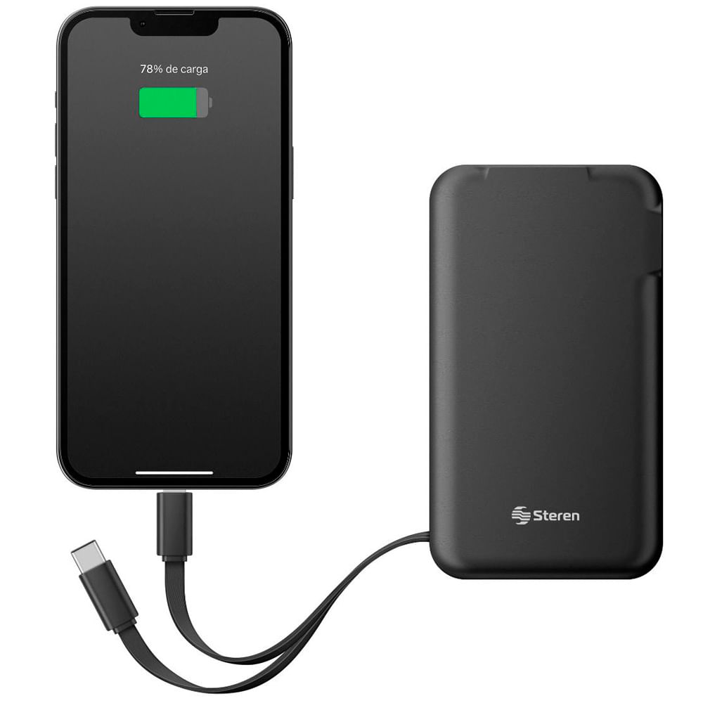 - Cables integrados: incluye USB-C y Lightning para mayor practicidad.