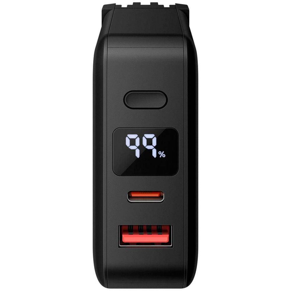 USB QC (18W), es la solución ideal para mantener tus equipos cargados en cualquier lugar. Su pantalla digital muestra el porcentaje exacto de batería disponible, y su diseño compacto lo convierte en el compañero perfecto para viajes o el día a día.