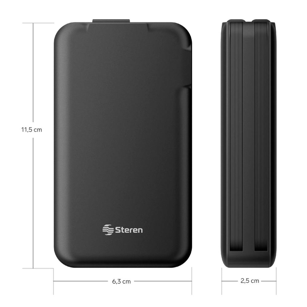 Cargador USB con Power Bank de 10,000 mAh Steren combina potencia, versatilidad y portabilidad en un solo dispositivo. Con