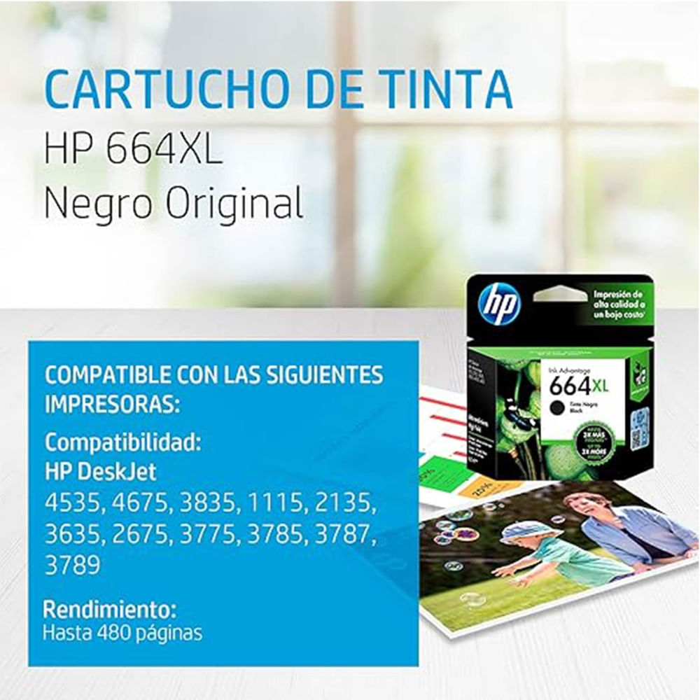 Cartucho para impresora HP 664XL, de alta capacidad en tinta negra, ideal para impresiones nítidas y duraderas. Diseñado para maximizar la eficiencia de tinta y adecuado para una gran cantidad de impresiones, garantizando calidad profesional.