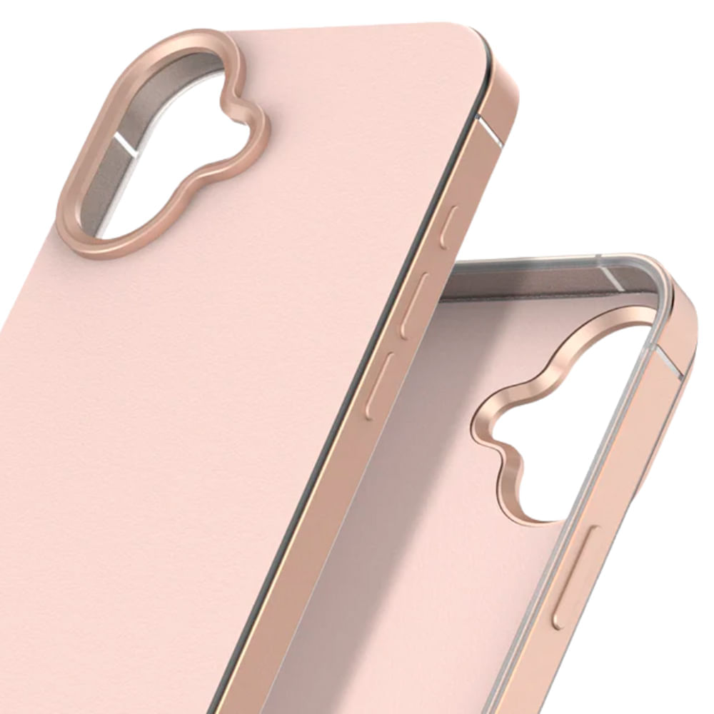 policarbonato de alta resistencia, tanto en el interior como en el exterior, ofrece una defensa excepcional frente a caídas, golpes y rayones, manteniendo la estética original del dispositivo. La superficie trasera suave al tacto se complementa con un marco metálico tipo parachoques que refuerza los bordes y mejora el agarre sin sacrificar comodidad.