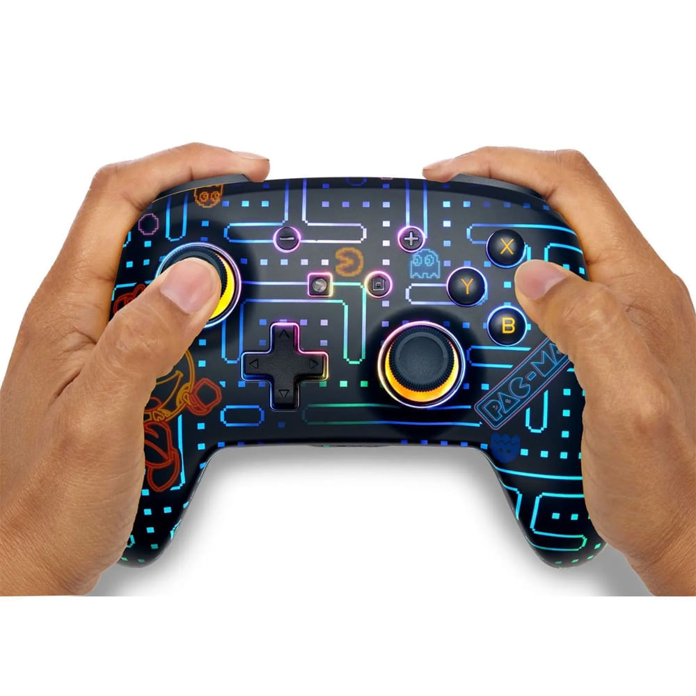 El control inalámbrico PowerA PAC-MAN Neon Arcade PWA-A-14151 para Nintendo Switch fusiona la estética retro del icónico PAC-MAN con tecnología moderna para una experiencia de juego envolvente. Su iluminación LED RGB fantasma revela un diseño oculto de PAC-MAN en la parte superior del control, aportando un estilo visual llamativo que destaca en cada partida.