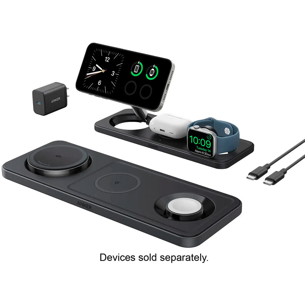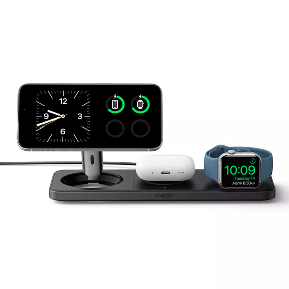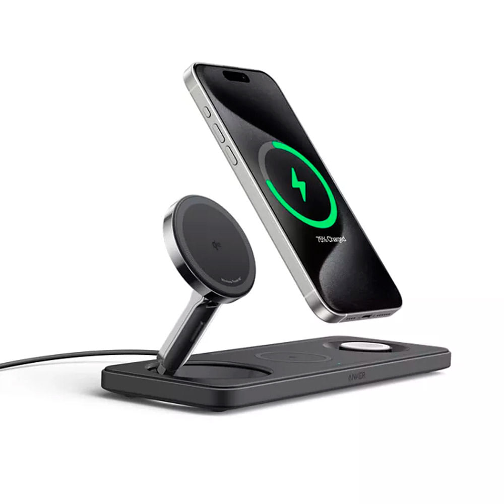 Descubre la Anker MagGo , una estación de carga inalámbrica 3 en 1 diseñada para ofrecer carga rápida y segura a tus dispositivos Apple. Equipada con tecnologías Anker PowerIQ y Apple Fast Charge , garantiza una recarga eficiente para tu iPhone, Apple Watch y AirPods , todo al mismo tiempo.