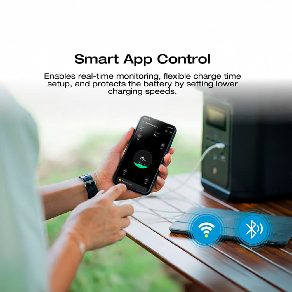 - Control inteligente: Aplicación EcoFlow + pantalla LCD para monitoreo detallado.