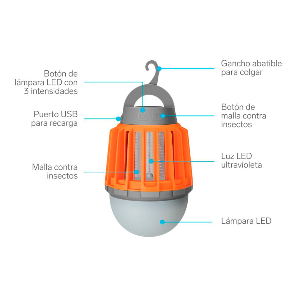 El sistema cuenta con una batería recargable de larga duración que permite un funcionamiento continuo durante toda la noche. Su construcción segura y portátil lo hace ideal para usar en dormitorios, terrazas cubiertas o durante actividades al aire libre, ofreciendo protección e iluminación en un solo dispositivo ecológico.