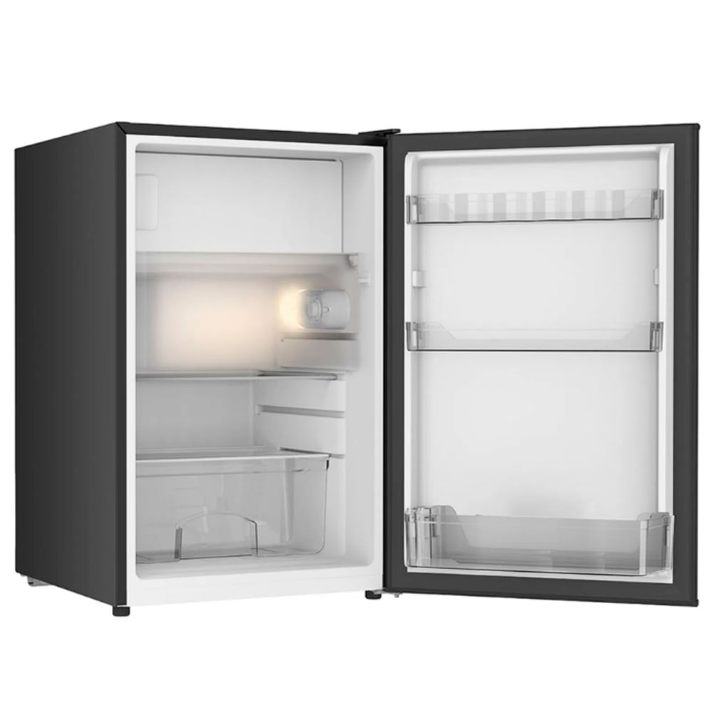 El tamaño ideal para espacios reducidos. Cuenta con espacio de congelador, cajón para frutas y verduras, anaqueles en puerta, termostato mecánico, 2 parrillas de vidrio, rack con capacidad para 6 latas e iluminación interior