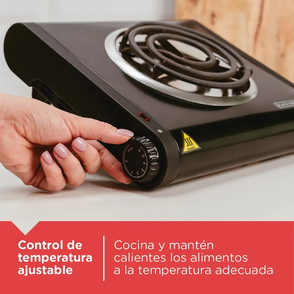 Haga fácil el servir para cenas de familias grandes y fiestas con una hornilla individual estilo bufé. El diseño fácil de usar es compacto para una transportación liviana con control de Temperatura variable para que pueda cocinar y mantener caliente los alimentos justo a la Temperatura adecuada. La bobina de la hornilla individual distribuye el calor uniformemente, mientras que una luz indicadora de Funciónamiento brinda tranquilidad y facilidad durante el uso.
