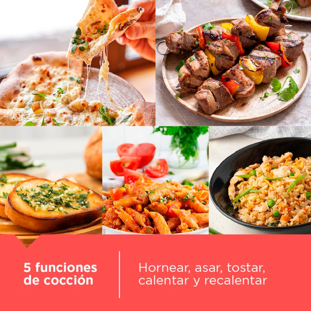 Tecnología Eventoast™, diseñada para distribuir el calor de manera equilibrada y evitar puntos calientes. Ya sea que estés calentando un croissant, asando vegetales o preparando una cena rápida, obtendrás resultados profesionales en casa.