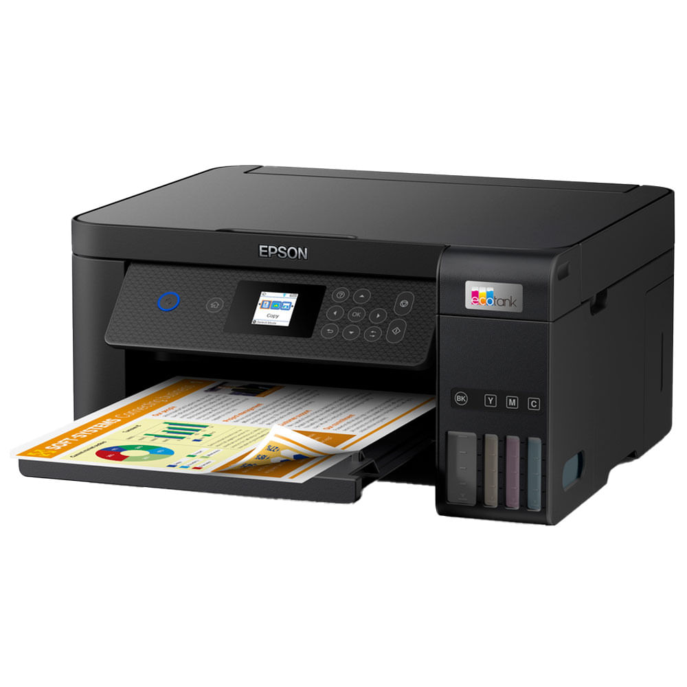 El elegante EcoTank L4260 negro es único en su clase. Estas impresoras vienen con un sistema de tanque de tinta integrado y son lo suficientemente compactas para adaptarse perfectamente a cualquier oficina. Disfrute de la recarga sin derrames con botellas de tinta individuales que tienen boquillas designadas. Obtenga documentos en blanco y negro nítidos y sin manchas que se imprimen con tinta pigmentada negra. Equipado con impresión automática a doble cara, puede imprimir en ambas caras del papel fácilmente, lo que reduce significativamente el costo y el desperdicio de papel. Elija imprimir de forma inalámbrica a través de la red o directamente desde dispositivos móviles conectados a través de Wi-Fi Direct. También puede descargar la aplicación Epson Smart Panel en su dispositivo móvil, convirtiéndola en un centro de control intuitivo que le permite configurar, monitorear y operar su impresora sin esfuerzo. Mejore el rendimiento de su negocio con esta solución de impresión inteligente hoy.