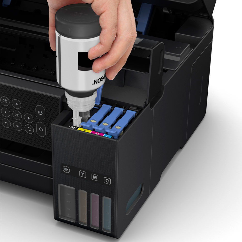 Diseño de tanque integrado compacto. Velocidades de impresión de hasta 10,5 ipm en negro y 5,0 ipm en color. Impresión automática a doble cara. Wi-Fi y Wi-Fi Direct. Impresión sin bordes hasta tamaño A4 . Recarga de tinta sin derrames. Configuración perfecta a través de Epson Smart Panel.