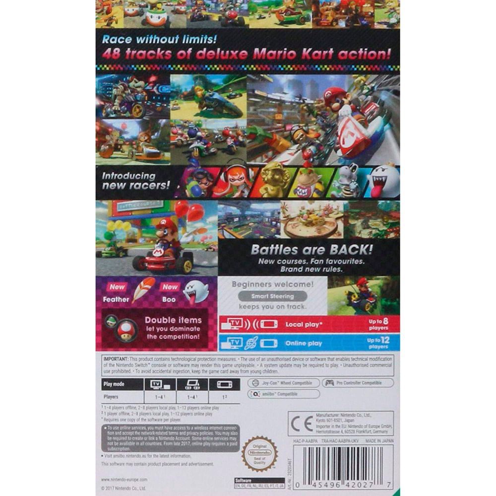 Gracias a sus múltiples modos de juego, opciones de control accesibles y compatibilidad con multijugador local y en línea, Mario Kart 8 Deluxe es ideal tanto para partidas rápidas como para competencias intensas con amigos o jugadores de todo el mundo.