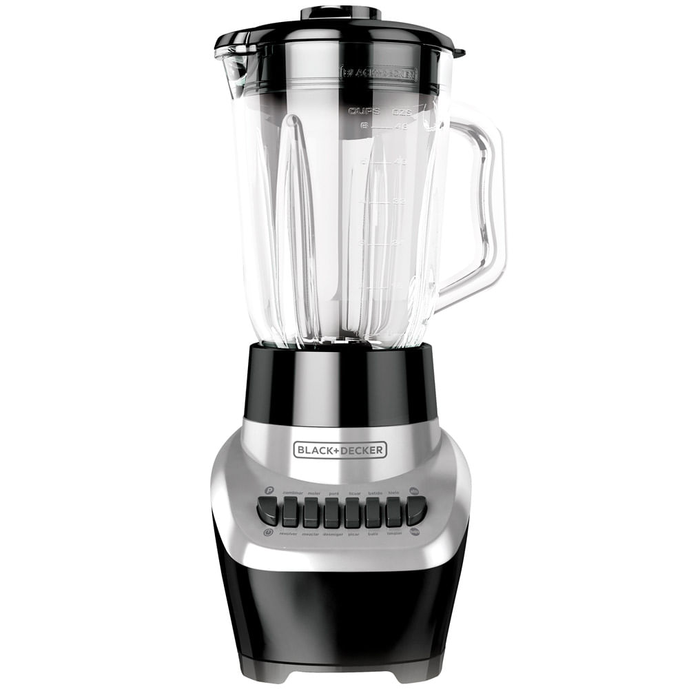 La Licuadora Black+Decker de 650 Watts agrega un poderoso impacto a cualquier cocina. El acero inoxidable FusionBlade ™ Funcióna con el tarro de vidrio para mezclar eficientemente cualquier combinación. Utilice las 12 opción es de velocidad y el botón de pulsación para un control total sobre el motor pesado, aplastando fácilmente el hielo y encontrando la consistencia perfecta para sopas y salsas. Además, la limpieza es una tranquilidad gracias a las partes extraíbles que se pueden lavar en el lavavajillas.Cuchillas quadpro de FUSIONBLADE™ ahora con un diseño exclusivo de 4 aspas para un mejor desempeño. 650 Watts. 12 Velocidades + Pulso. Tarro de vidrio de 6 tazas (1,4 Litros). Tapa de inserción en la taza de medición de 30ml. Partes Desprendibles Aptas para Lavavajillas.