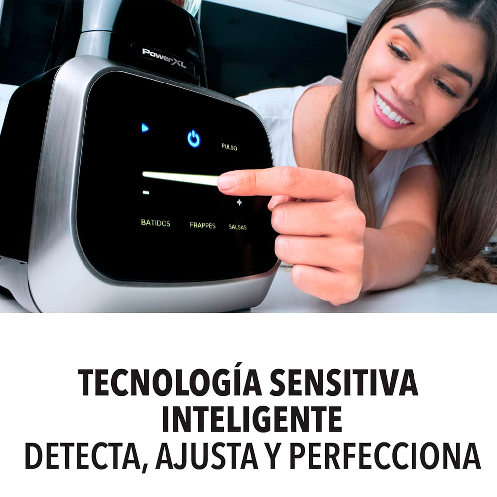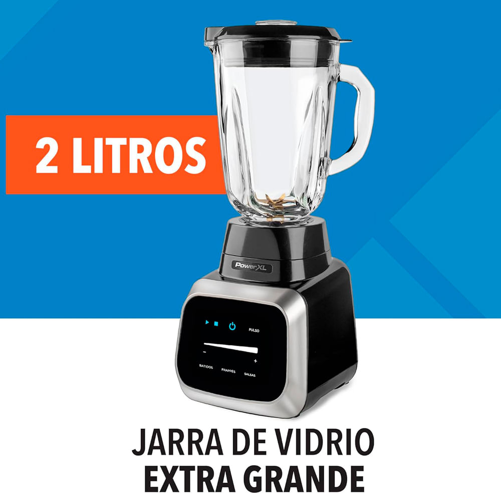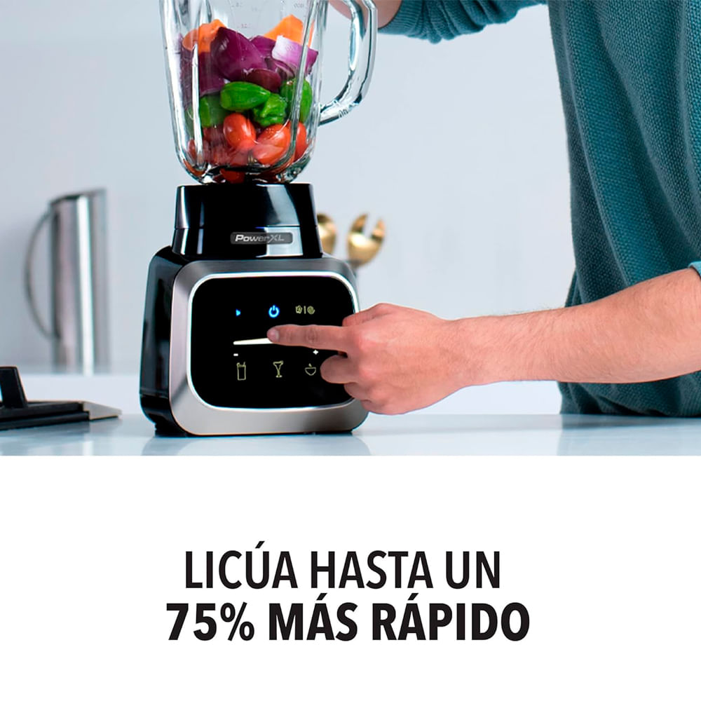 La Licuadora PowerXL tiene tecnología Sensitiva Inteligente que detecta los alimentos, ajusta la velocidad y tiempo logrando resultados precisos y perfectos y un motor con tecnología Inteli-Fuse™, que protege el motor contra el recalentamiento y extiende la vida útil de tu licuadora. La licuadora PowerXL tiene pantalla digital táctil, intuitiva y de fácil uso, además, en su jarra de vidrio extra grande de 2 litros con PerfectPour, podrás acomodar todos los ingredientes para tus preparaciones. Piezas lavables en lavavajillas.