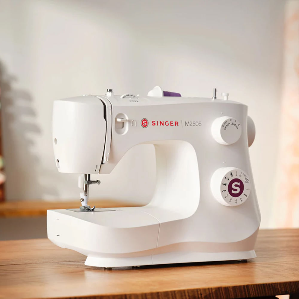 La máquina de coser Singer M2505 es compacta y potente, con 10 puntadas esenciales y decorativas, ojalador de 4 pasos, brazo libre y luz LED. Su estructura interna metálica garantiza durabilidad, ideal para principiantes y proyectos domésticos.