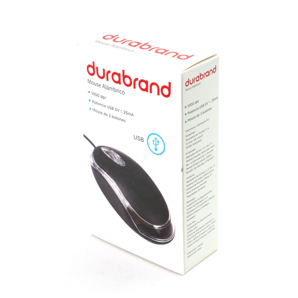 Mouse alámbrico de la marca Durabrand con luz LED. Equipado con 3 botones y una resolución de 1000Dpi, modelo INT-WDM2BL. Perfecto para tareas cotidianas de computación y diseño. Su diseño ergonómico ofrece comodidad durante su uso prolongado. Ideal para usuarios tanto profesionales como ocasionales. Peso ligero y fácil de transportar. Con un diseño ergonómico y funcional, este mouse inalámbrico te permite desplazarte por la pantalla con precisión y suavidad, sin la limitación de los cables, lo que mejora tu experiencia informática y te brinda mayor flexibilidad en tu trabajo o entretenimiento digital.
