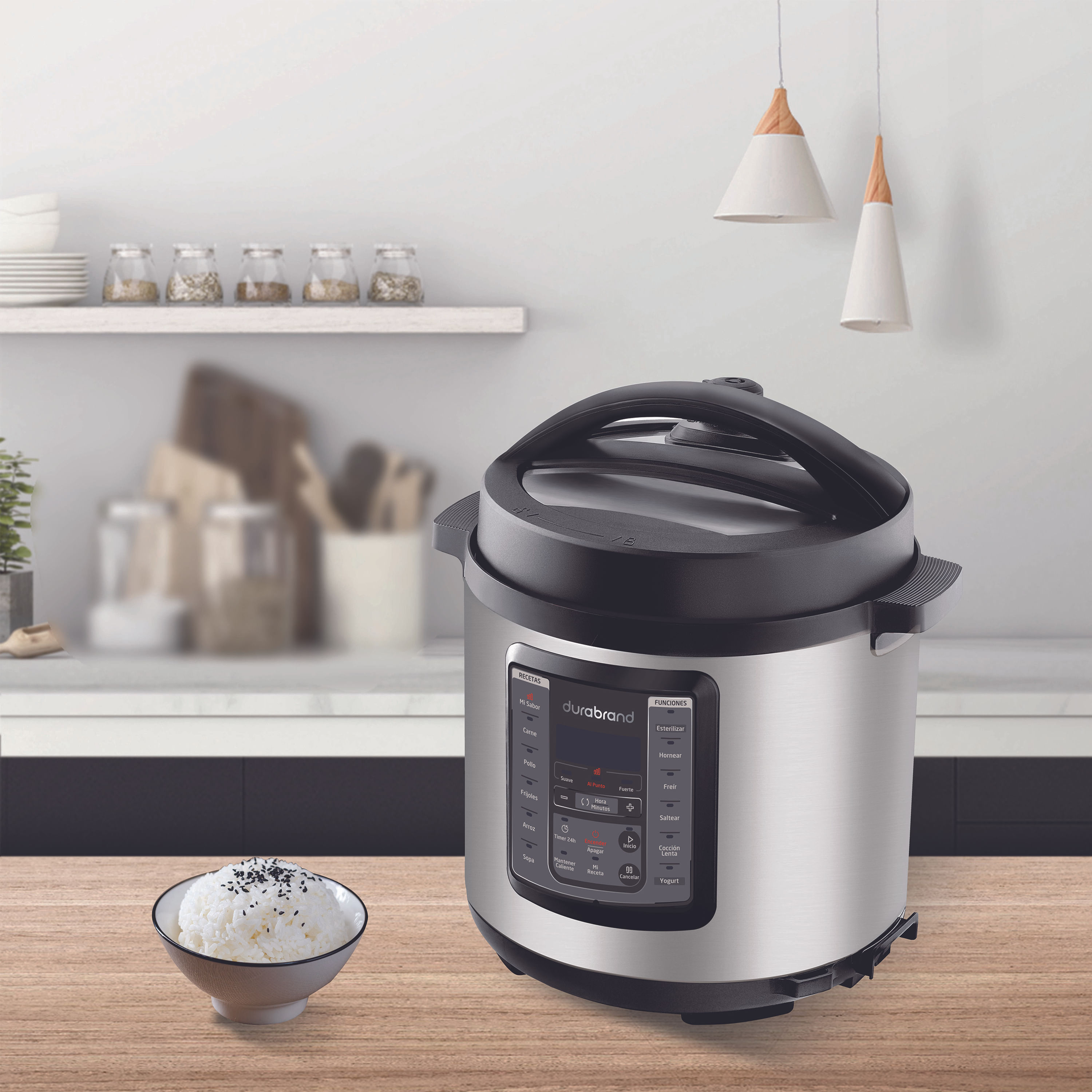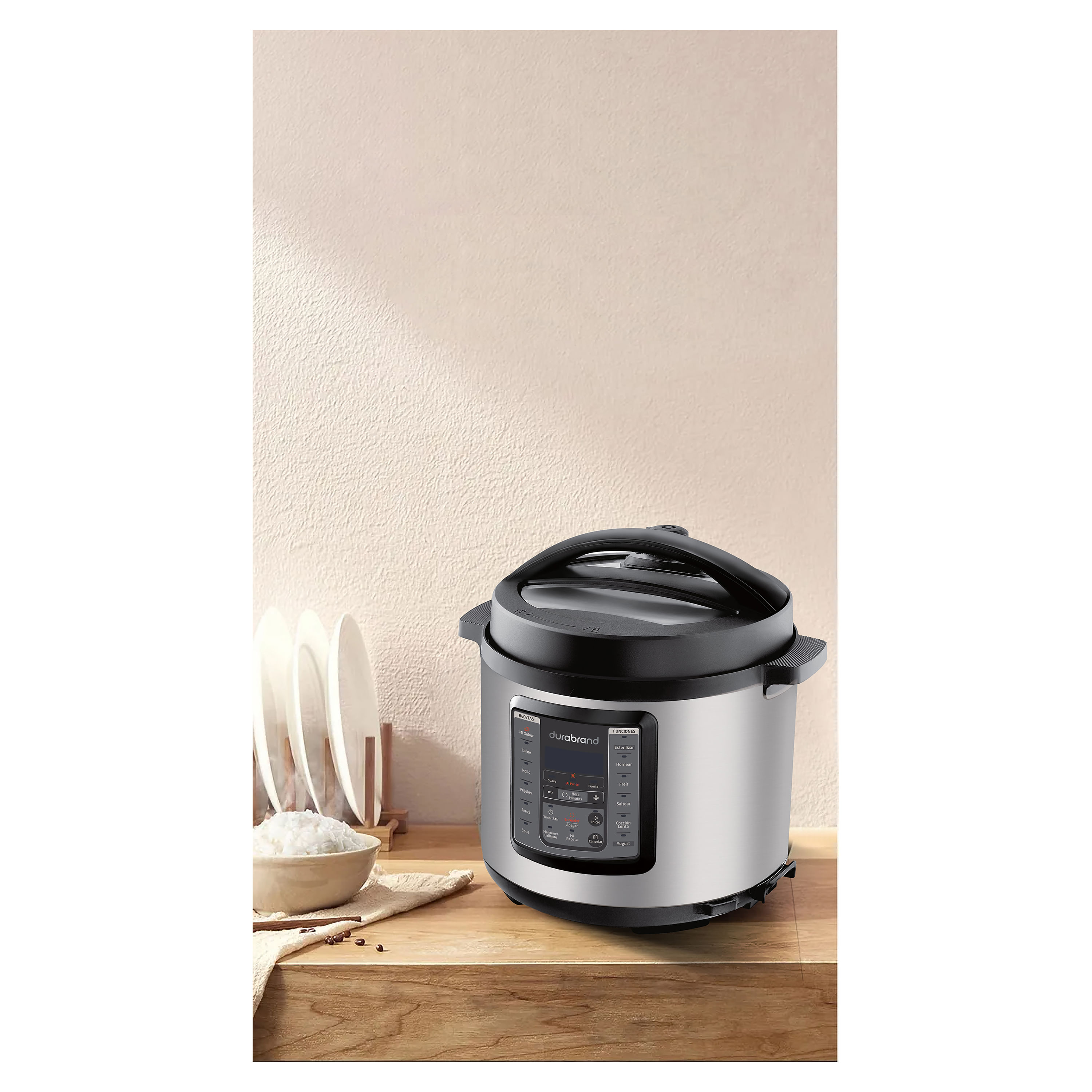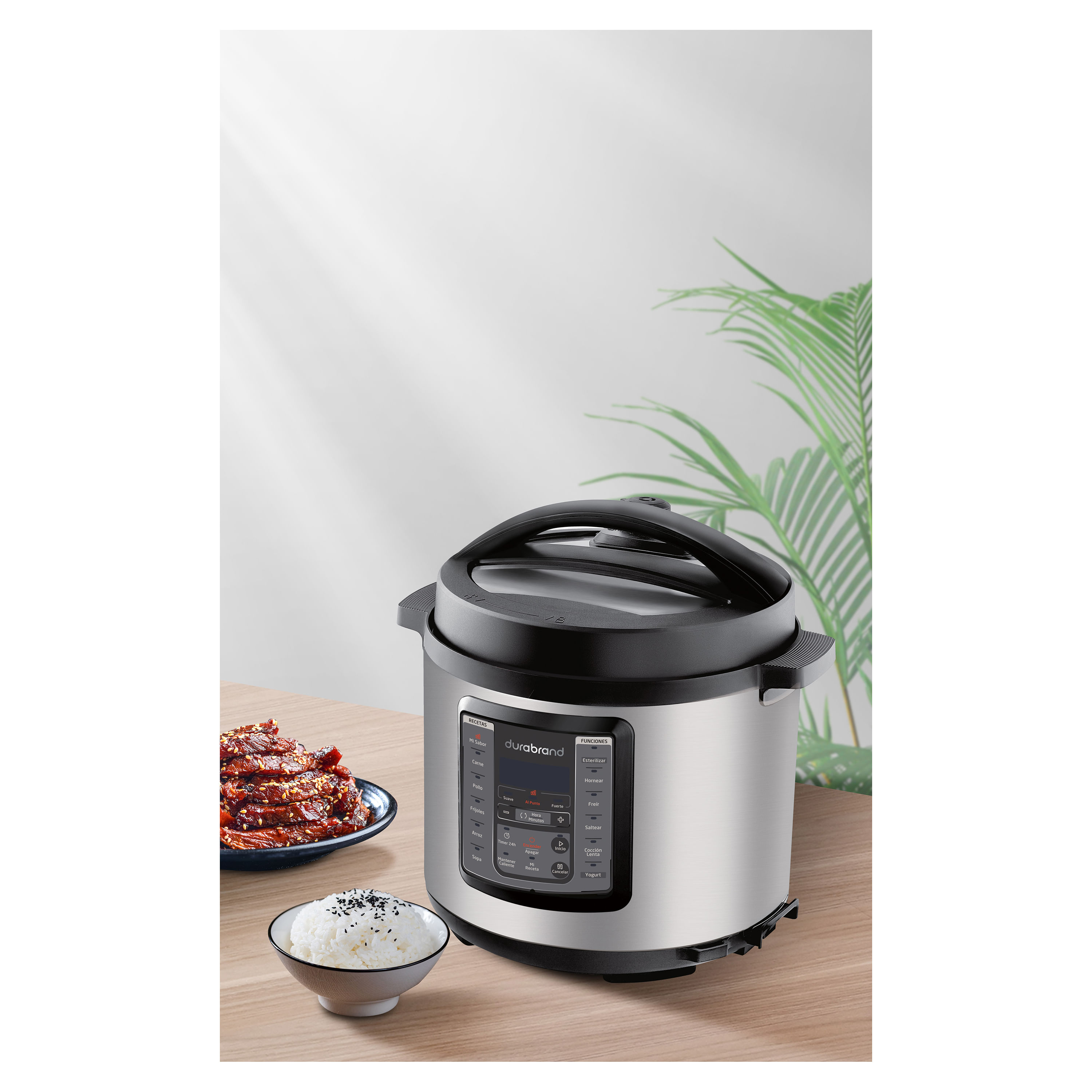 La Olla arrocera Durabrand Multifuncional de 6 litros es un electrodoméstico versátil y práctico que te permite cocinar una amplia variedad de platillos de manera rápida y eficiente. Ideal para familias o para aquellos que disfrutan de preparar comidas en grandes cantidades, esta olla es perfecta para arroces, guisos, sopas y mucho más. Con 6 litros de capacidad, esta olla es perfecta para preparar comidas para varias personas, facilitando la cocina para reuniones familiares y cenas con amigos.