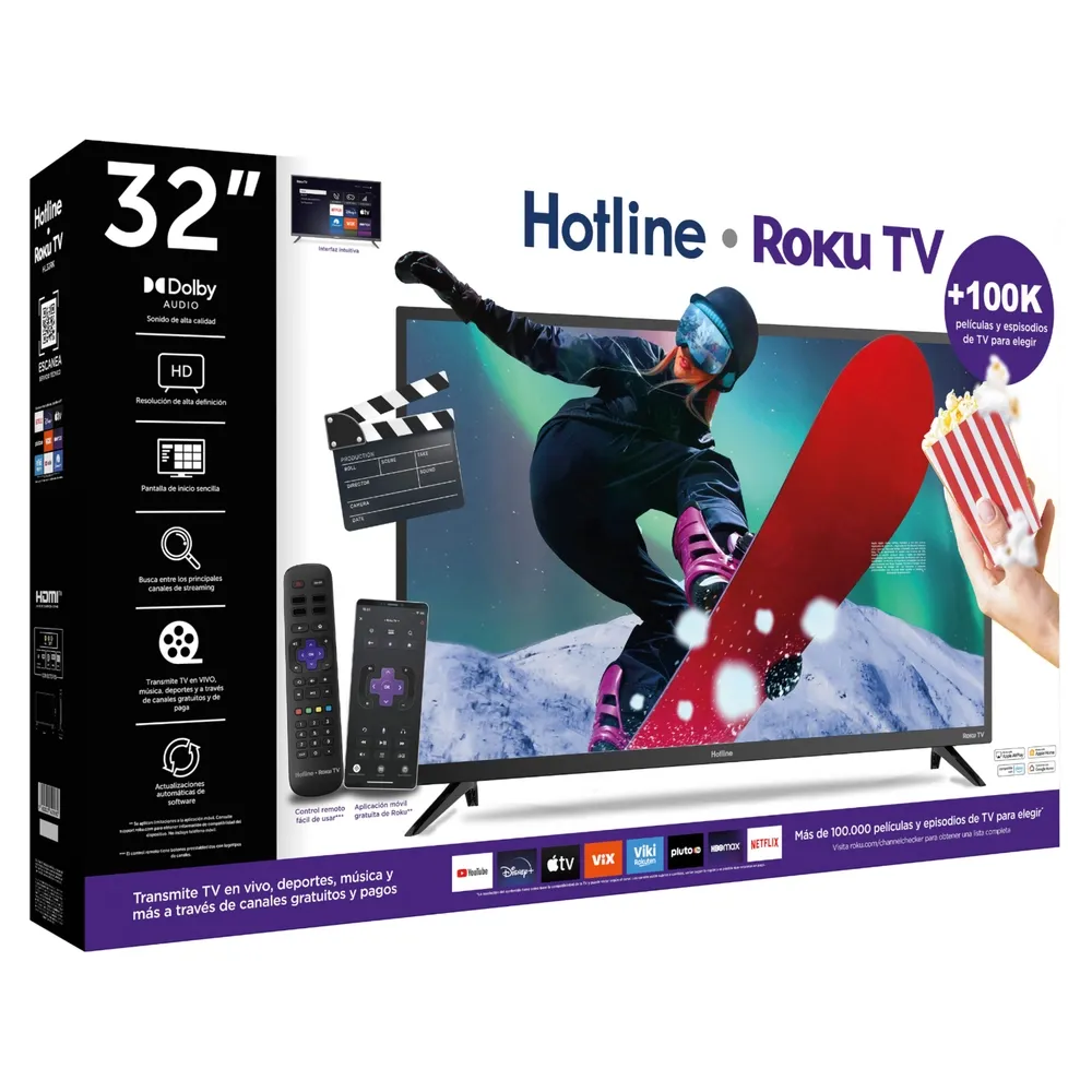 La Pantalla Hotline Led Smart Roku TV es un televisor inteligente de 32 pulgadas que combina la calidad de imagen LED con la versatilidad del sistema operativo Roku. Ideal para quienes buscan una experiencia de visualización enriquecedora y acceso a una amplia variedad de contenido, este televisor ofrece una resolución nítida y una interfaz de usuario intuitiva que facilita la navegación entre aplicaciones y canales. La pantalla ofrece una resolución de 1366 x 768 píxeles, asegurando imágenes claras y vibrantes con colores ricos y detalles nítidos, ideales para disfrutar de películas, programas de televisión y videojuegos.Información del producto: La información de este producto es proporcionada por fabricantes y distribuidores. Te recomendamos verificar las especificaciones con el fabricante para obtener detalles más actualizados.