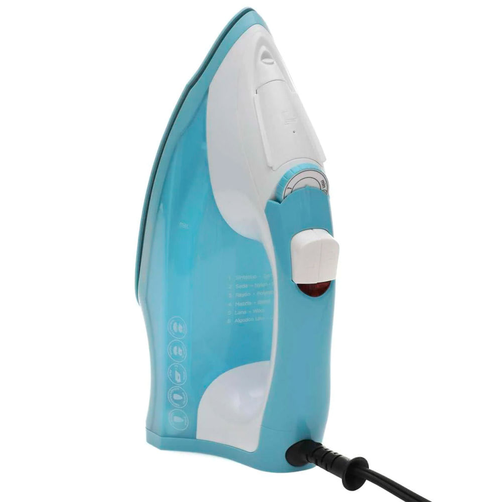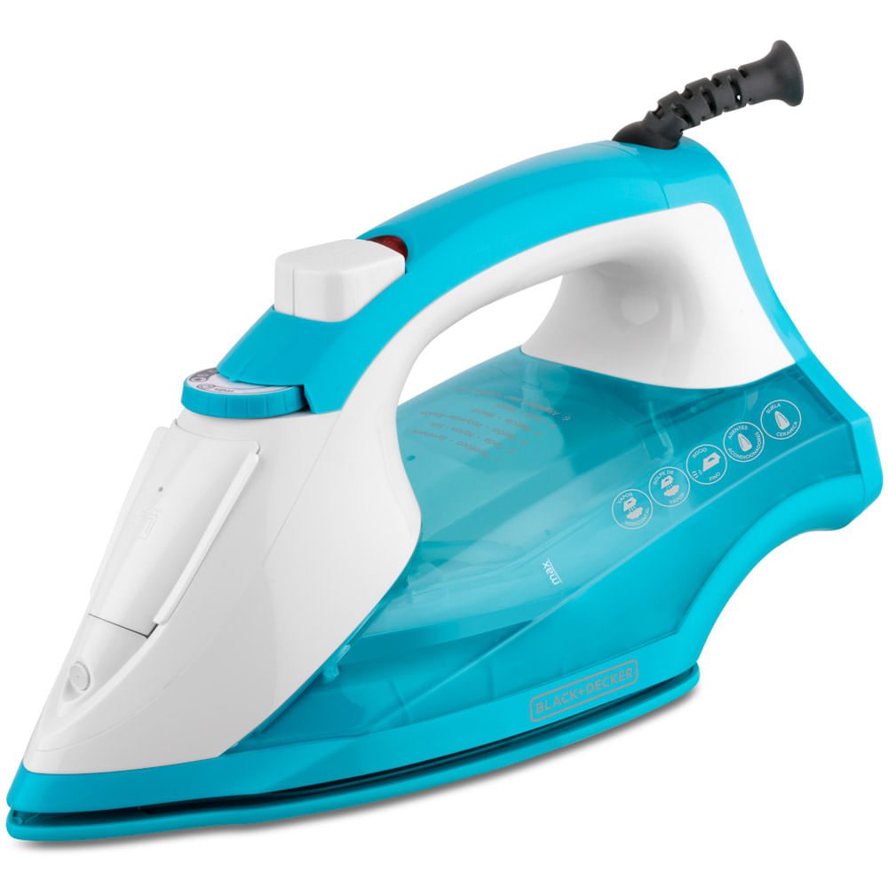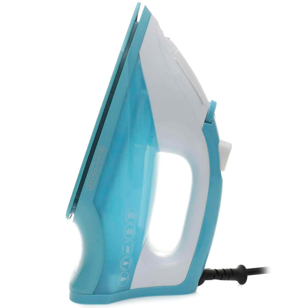 Plancha de vapor en color azul, cuenta con una suela antiadherente CeramicGlide™, sistema Smart Steam y mango Confort Grip. Marca BLACK+DECKER, modelo IR1851.