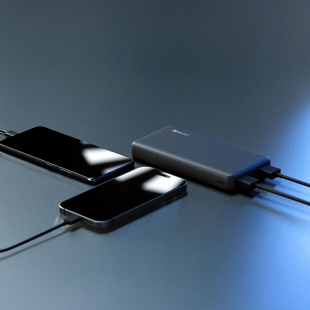 Con su triple sistema de carga, el PowerCell Ultra permite alimentar hasta tres dispositivos simultáneamente gracias a su puerto USB-C® bidireccional de 15W máximo y dos puertos USB-A de 12W cada uno. La tecnología USB-C no solo ofrece carga rápida para tus dispositivos compatibles, sino que también permite recargar el propio banco de energía en aproximadamente 7.5 a 8 horas, reduciendo significativamente los tiempos de espera en comparación con modelos convencionales.
