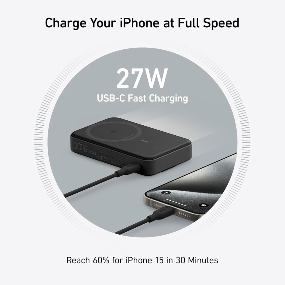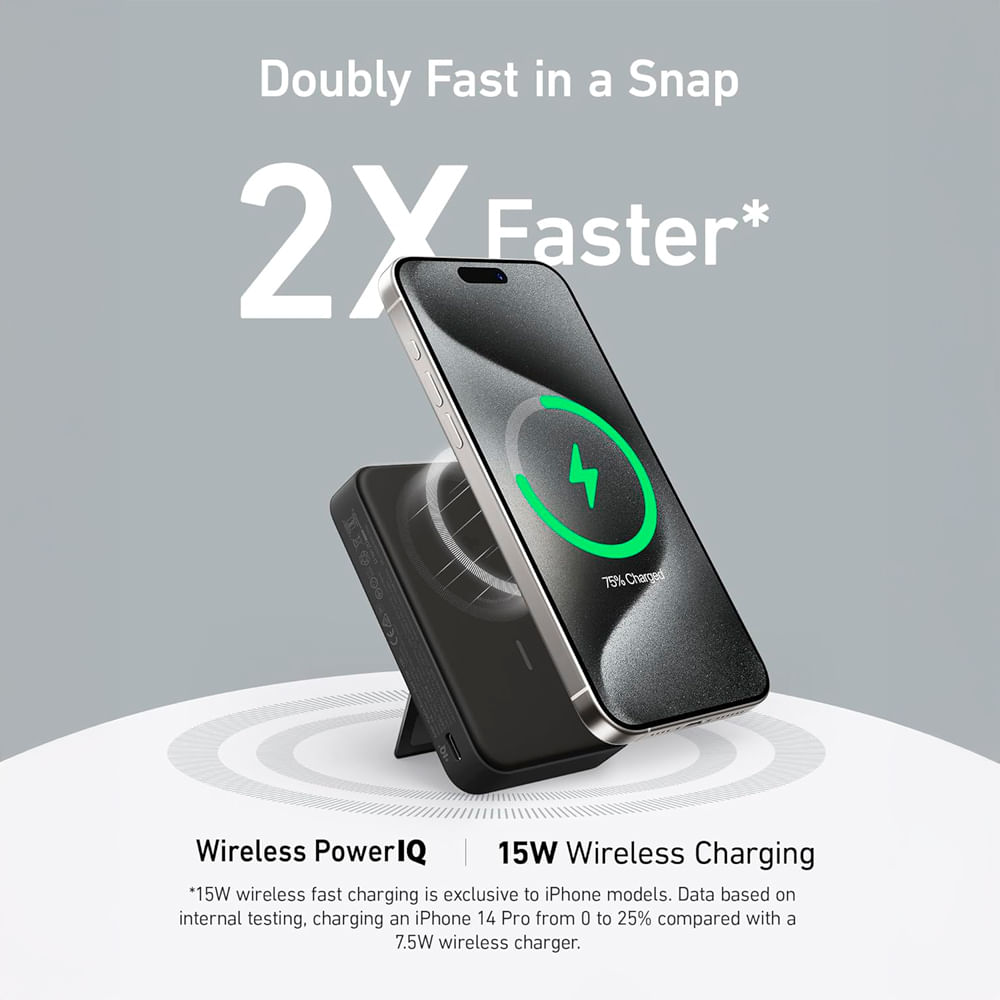 Batería magnética Anker MagGo 10K combina potencia, velocidad y practicidad en un diseño compacto con soporte plegable. Compatible con iPhones MagSafe, ofrece carga inalámbrica ultrarrápida de 15 W certificada Qi2 y hasta 20 W mediante USB-C, garantizando energía confiable para tu día. Su pantalla inteligente muestra el estado de carga en tiempo real, mientras que su batería de 10,000 mAh permite hasta 1,8 cargas completas para un iPhone 15 Pro. Con tecnologías avanzadas de disipación de calor y conversión de energía, asegura eficiencia superior y un rendimiento seguro en cada uso.