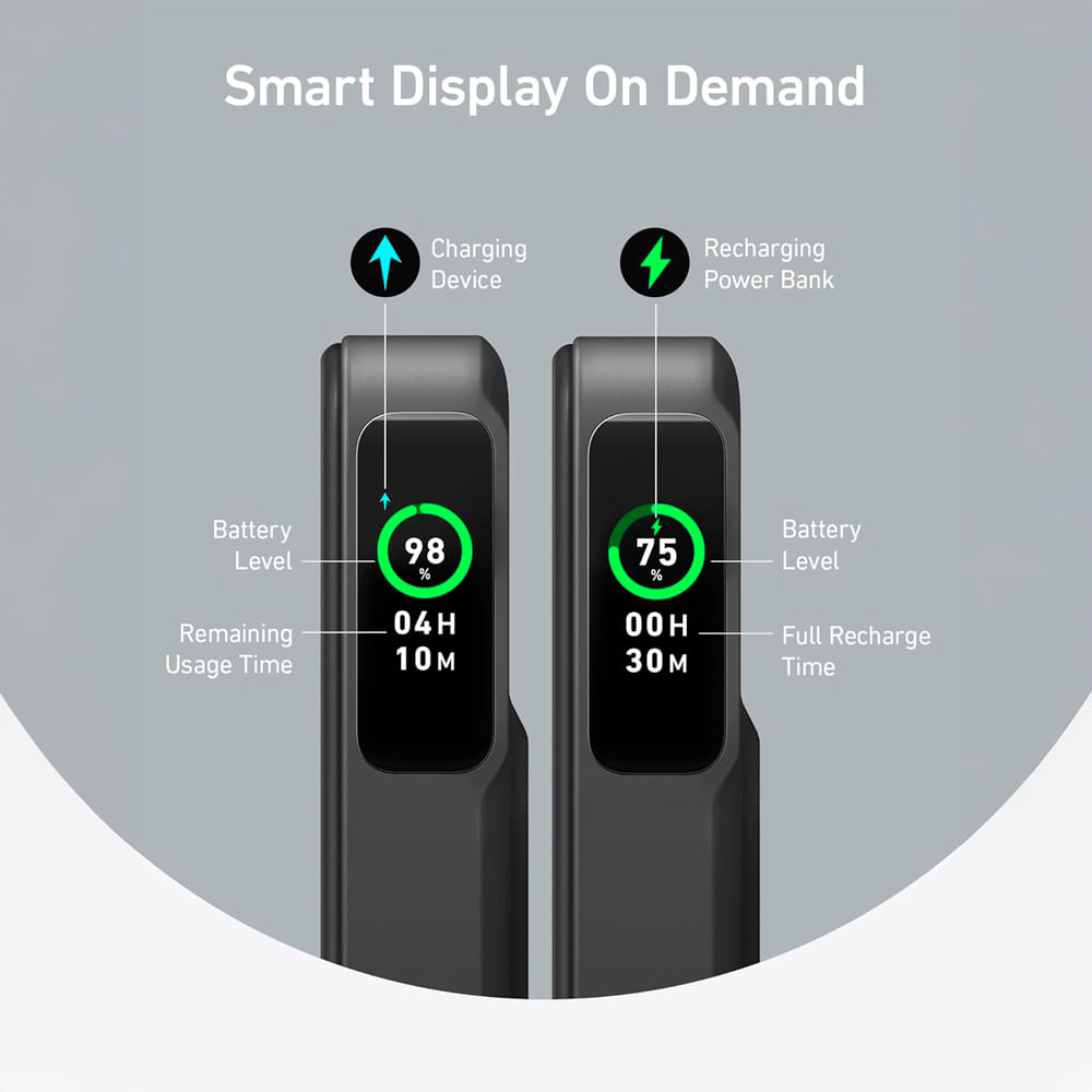 - Pantalla inteligente: muestra porcentaje y tiempo restante de carga.
