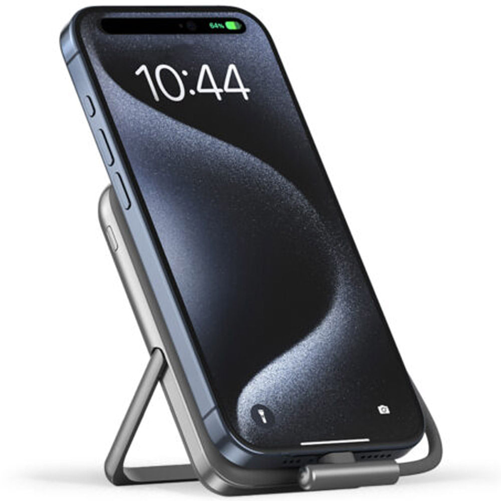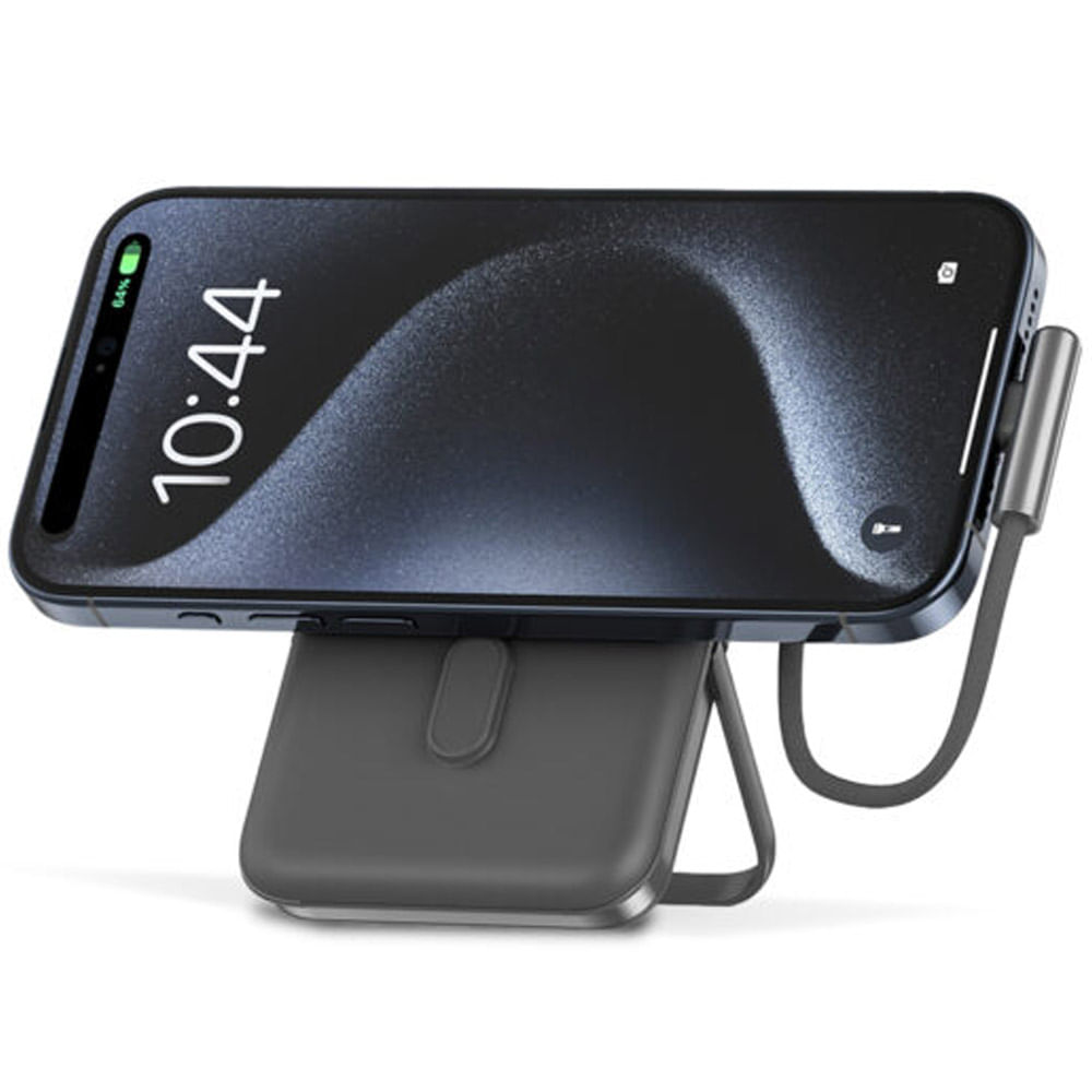 Su diseño multifuncional incluye un práctico soporte de aleación de zinc que permite colocar tu teléfono en posición horizontal, ideal para disfrutar contenido en modo manos libres mientras se carga. El acabado superficial mate no solo brinda un aspecto premium, sino que mejora el agarre para mayor seguridad durante el transporte. Con capacidad para 10,000mAh, puede recargarse completamente en apenas 2 horas gracias a su tecnología de carga bidireccional rápida de 18W, eliminando la necesidad de llevar cables adicionales.