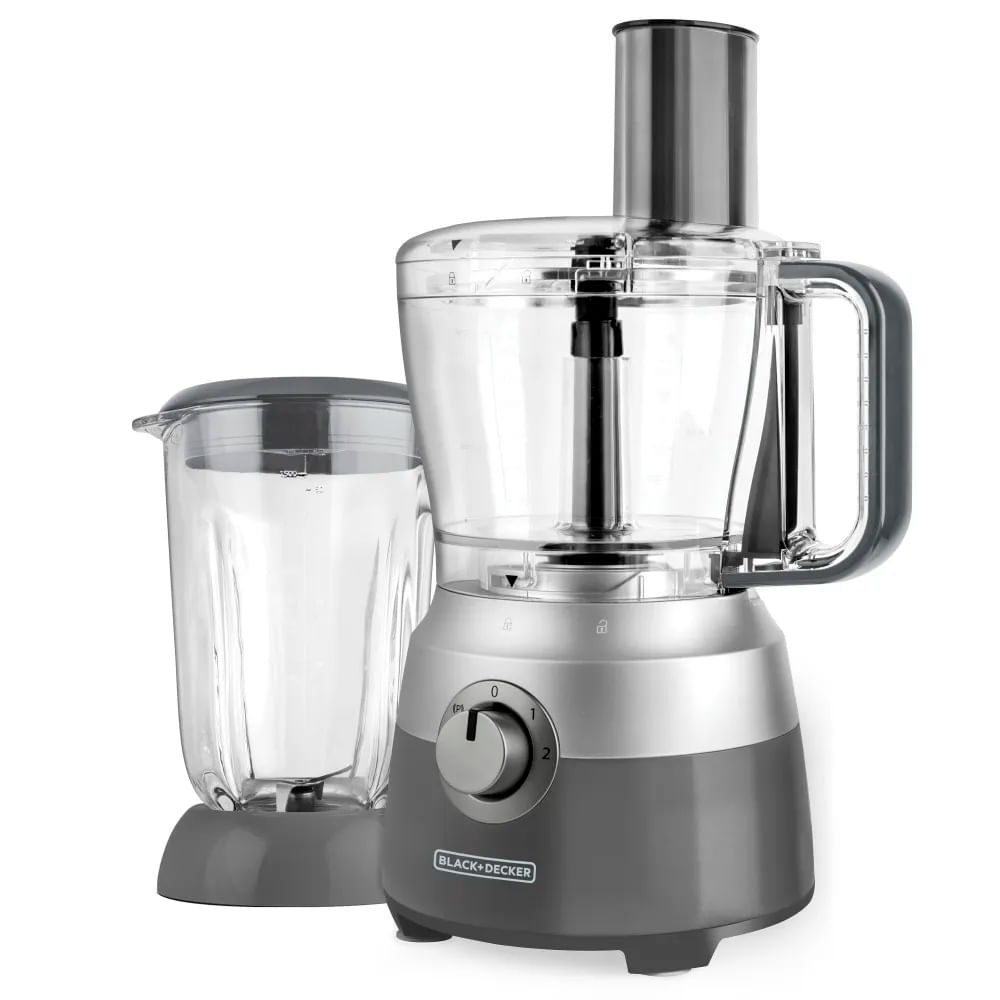Prepara desde ensaladas hasta crema de cacahuate, ya que cuenta con 600 Watts de potencia y accesorios fáciles de colocar ideales para rebanar, picar, desmenuzar, rallar, hacer puré, amasar, emulsionar y licuar. Cuenta con 2 velocidades con función de pulso para resultados precisos.Prepara deliciosos platillos y bebidas de una manera muy fácil y rápida con el Procesador de Alimentos de Black + Decker con Licuadora. 600 Watts de potencia máxima, 2 velocidades y Función de Pulso. Cuenta con cuchillas de acero inoxodable para picar y mezclar. Prepara comidas completas para toda la familia con el recipiente de plástico con capacidad de 10 tazas. Cuenta con accesorios para rebanar, picar, desmenuzar, rallar, hacer puré, amasar, emulsionar y licuar. Jarra de vidrio con capacidad de 1.5 litros.
