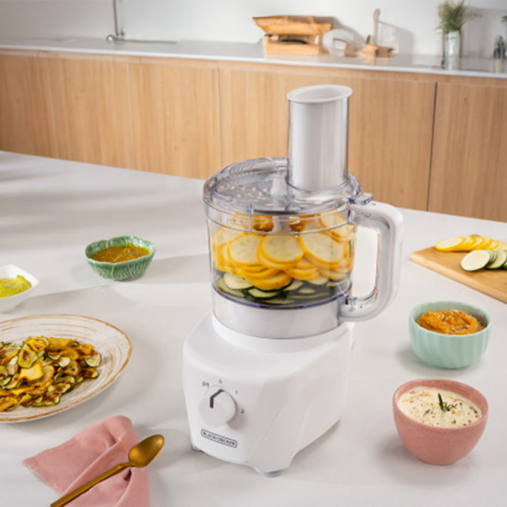 8 tazas, es ideal para picar, mezclar, rallar y hacer puré en cuestión de segundos. Su diseño fácil de armar, con un sistema