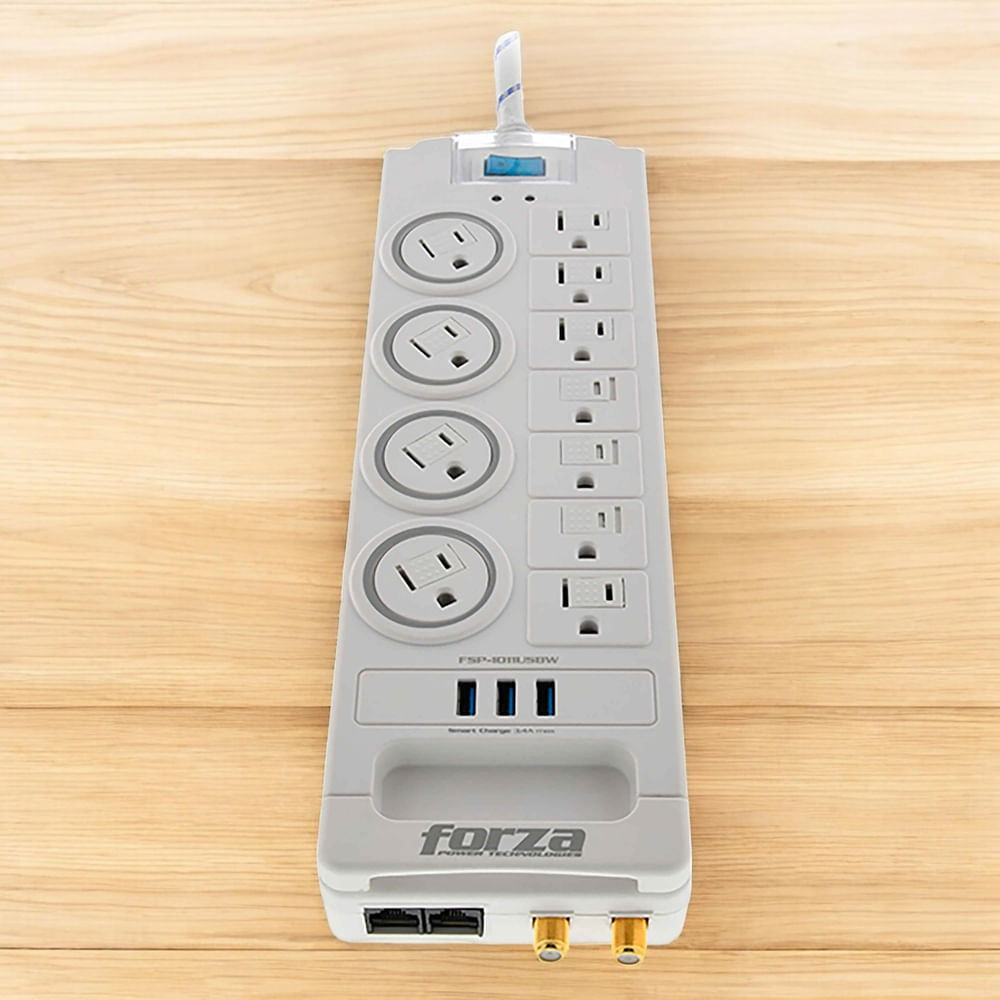 Regleta Forza con capacidad de voltaje de 110-240V y puertos USB, ideal para conectar múltiples dispositivos electrónicos. Su diseño compacto la hace perfecta para el hogar o la oficina, garantizando seguridad y eficiencia en el uso de la energía. Diseñado con la más alta calidad y tecnología avanzada, este supresor de picos ofrece una solución confiable y efectiva para mantener tus dispositivos seguros y funcionando correctamente en todo momento.