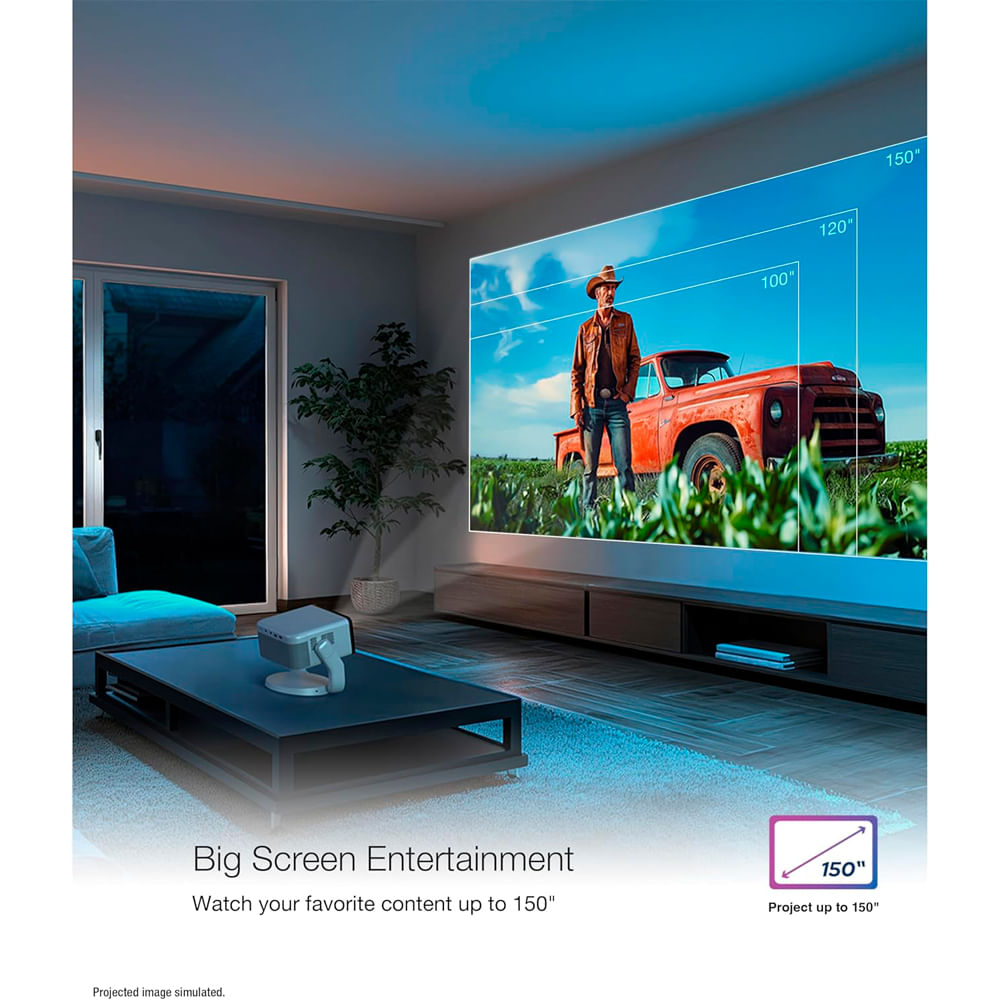 Tamaño de imagen inmersiva de hasta 150 pulgadas