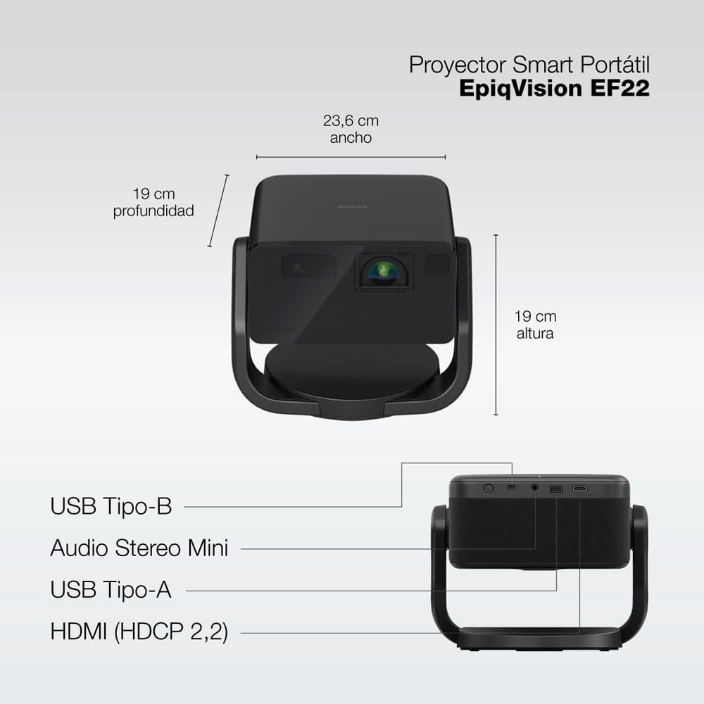 Convierte cualquier espacio en una experiencia cinematográfica épica con el Proyector Láser Inteligente EPSON EpiqVision EF22. Diseñado para el entretenimiento de gran pantalla, proyecta imágenes inmersivas de hasta 150 pulgadas, ideales para películas, deportes, videojuegos o streaming, tanto de día como de noche.