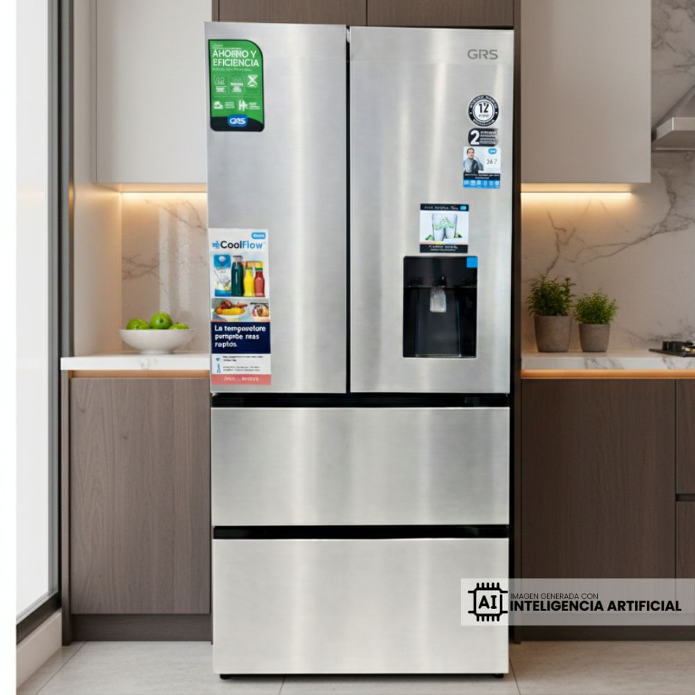 Diseño French Door + 2 gavetas en congelador + Dispensador de agua fría (llenado manual)