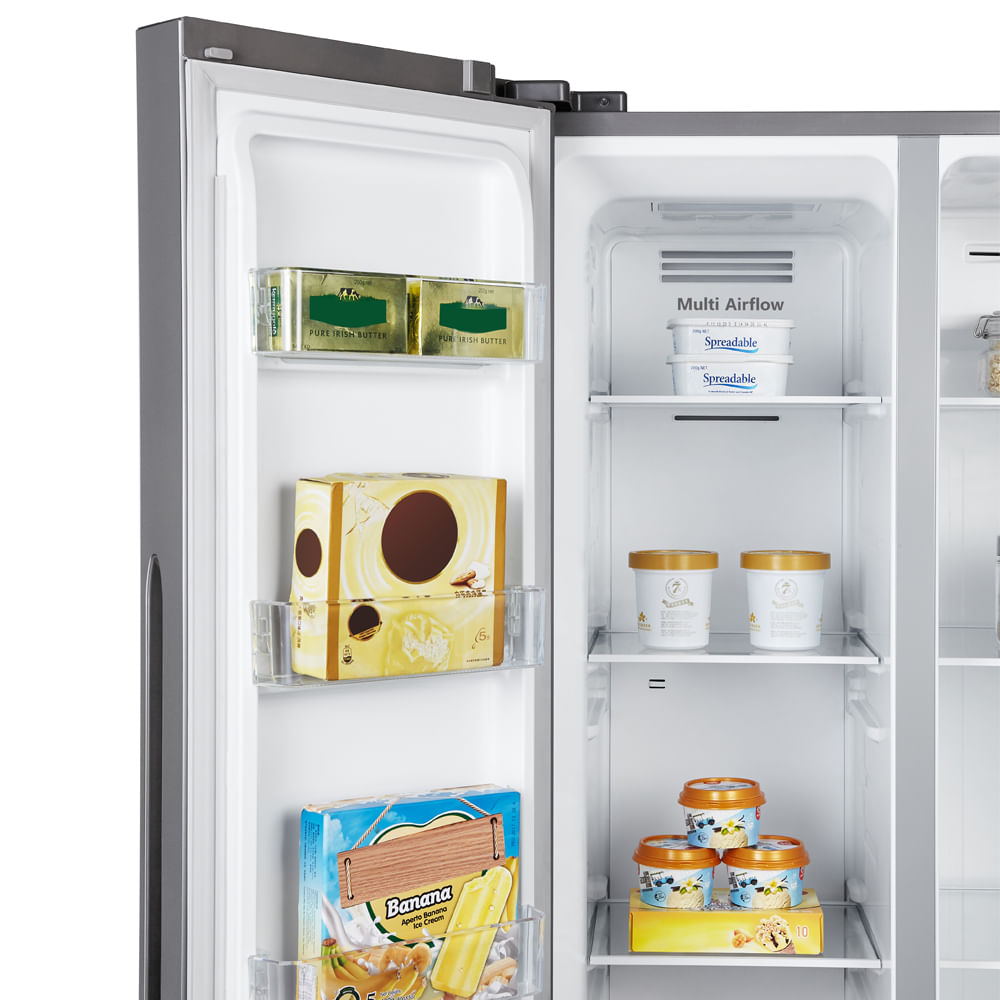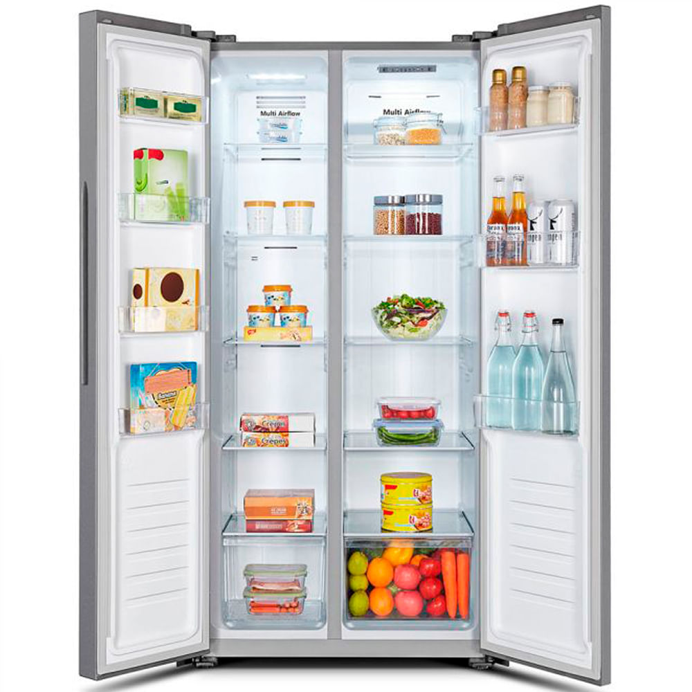 La Refrigeradora Side By Side Hisense RS3P428NEDA es la solución ideal para mantener tus alimentos frescos y organizados. Su diseño moderno y funcional combina tecnología avanzada con una amplia capacidad, asegurando que cada rincón de tu cocina se vea elegante y esté bien equipado.