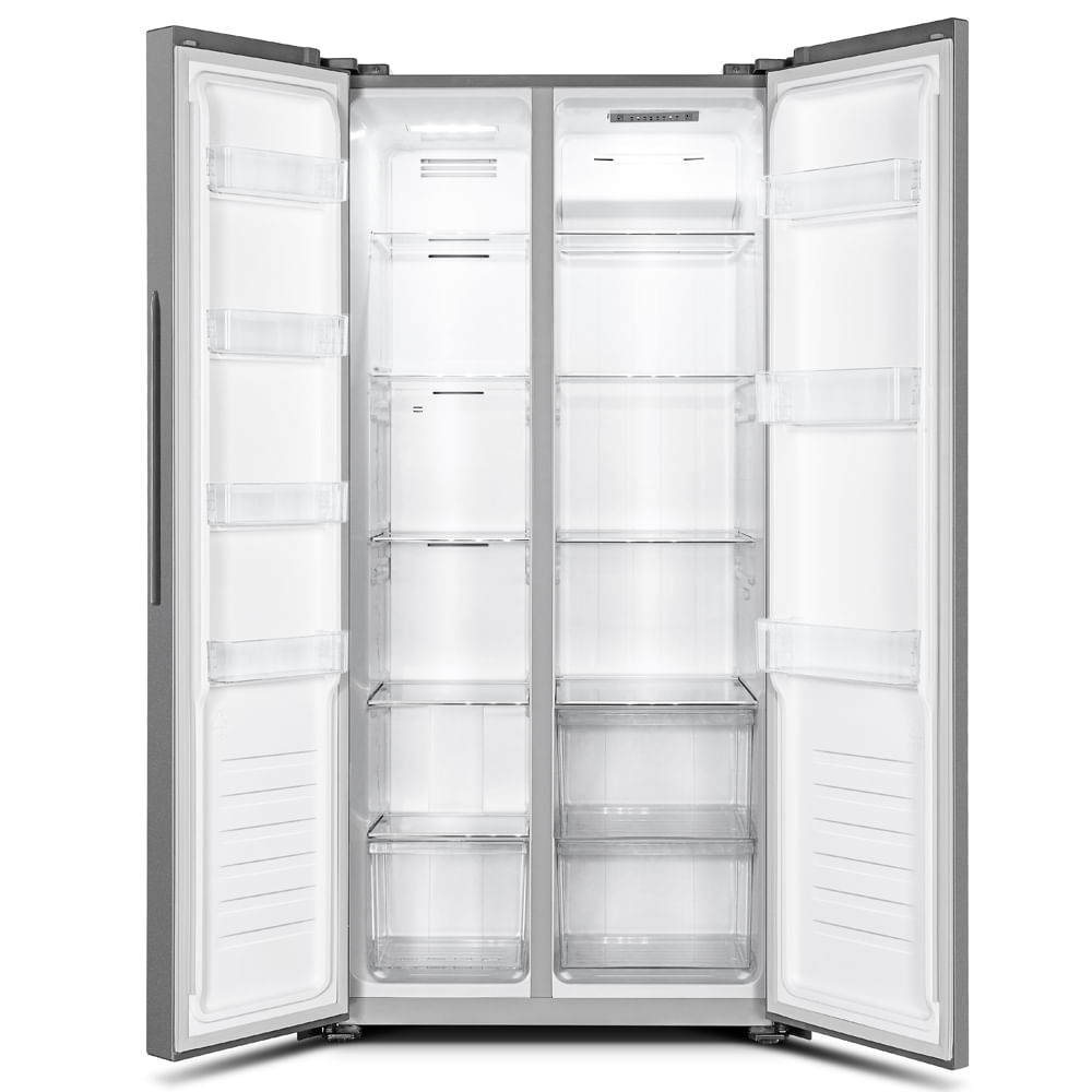La Hisense RS3P428NEDA2 es una refrigeradora Side-by-Side de 15.6 pies cúbicos (441 litros) con un elegante acabado en color Silver y diseño de puertas planas. Equipada con tecnología Inverter y sistema Total No Frost, garantiza un enfriamiento eficiente sin escarcha. Su sistema Multi Air Flow distribuye el aire uniformemente, manteniendo los alimentos frescos por más tiempo.