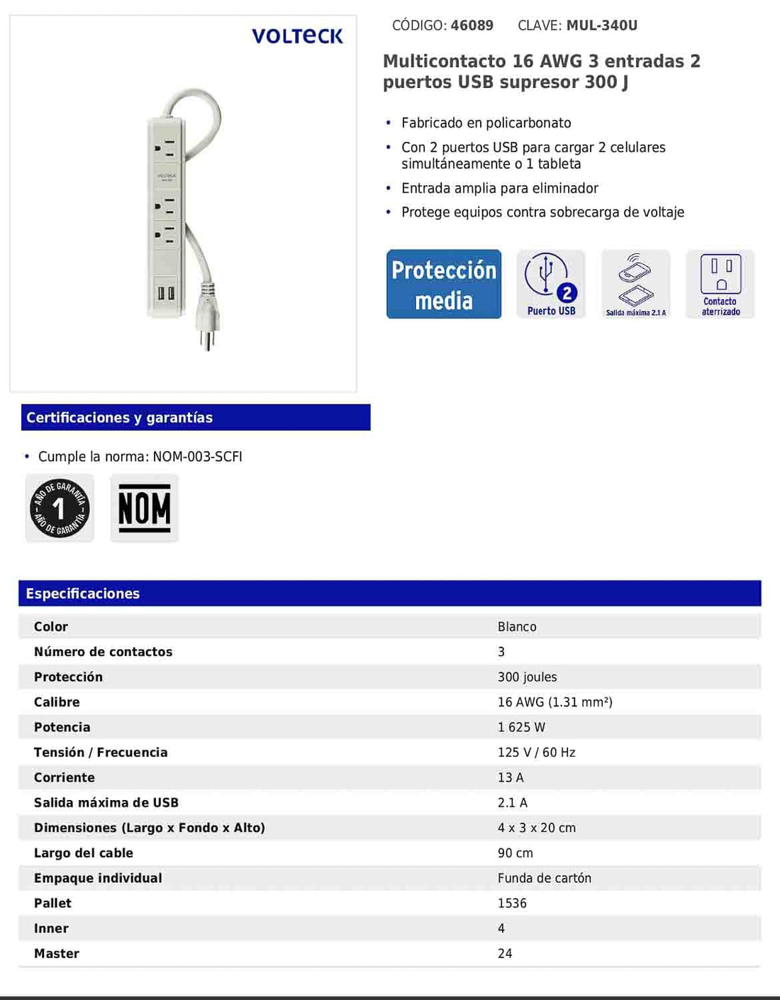 Regleta multicontacto de 3 entradas con 2 puertos USB y supresor de 300 joules — Comparar Precios | Joolia