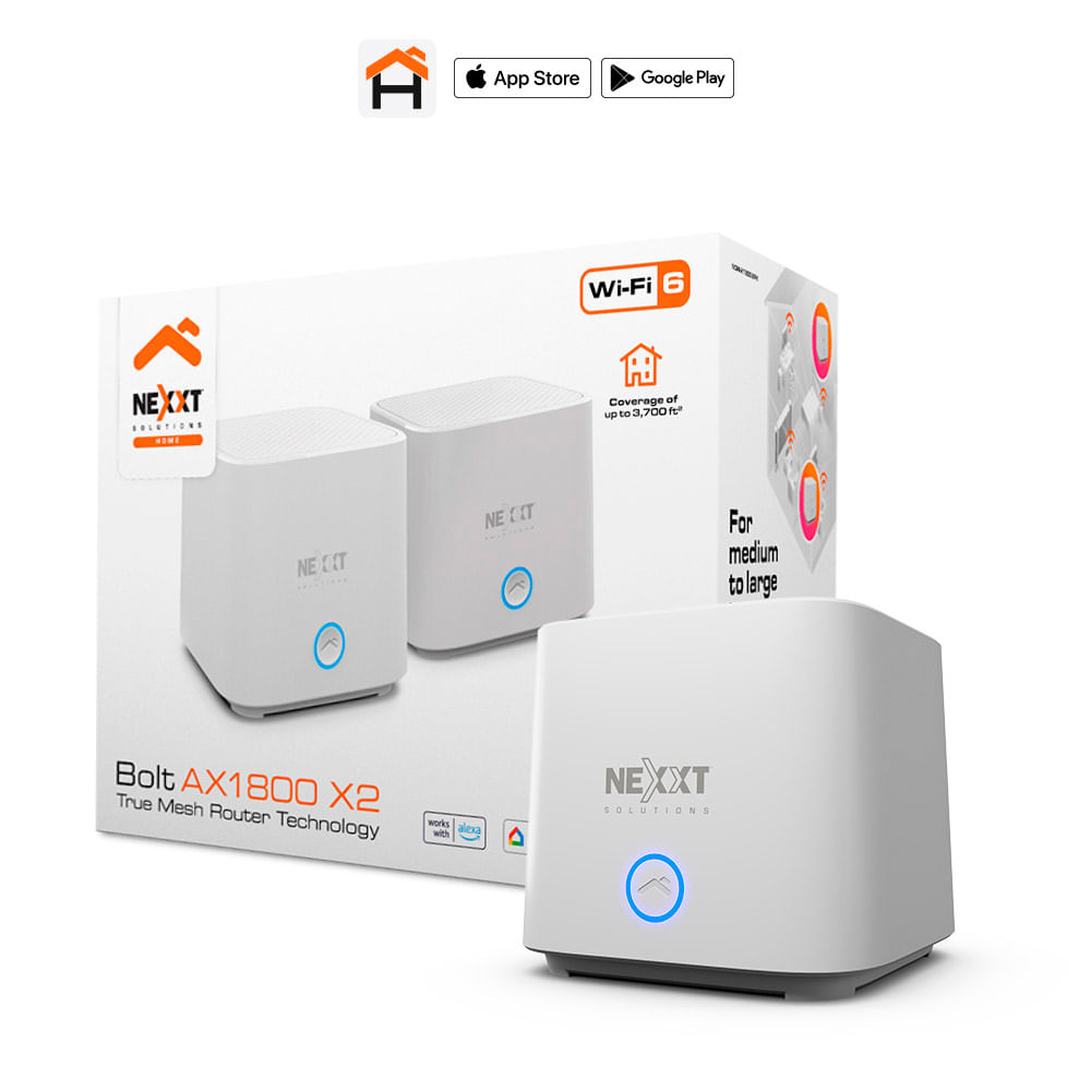 sistema Wi-Fi Mesh Nexxt Bolt AX1800, diseñado para ofrecer velocidad, cobertura y estabilidad excepcionales. Gracias a su tecnología